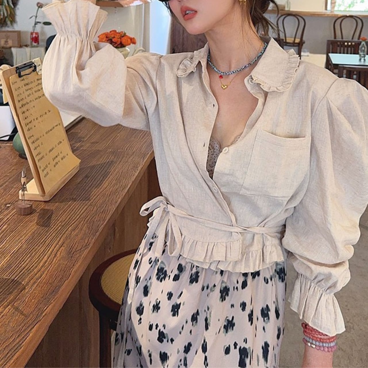 パフスリーブ リネン シャツ a283