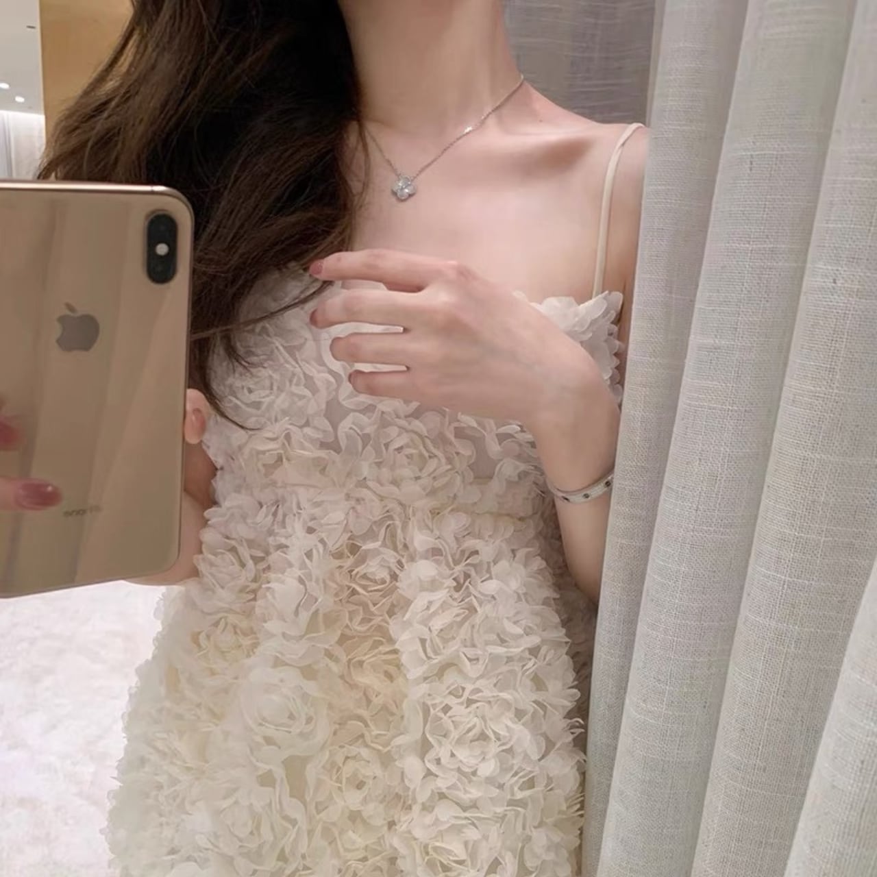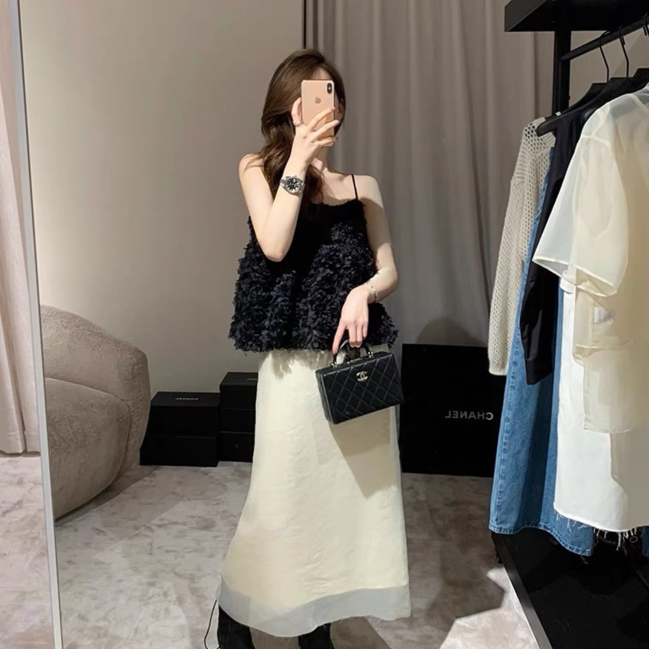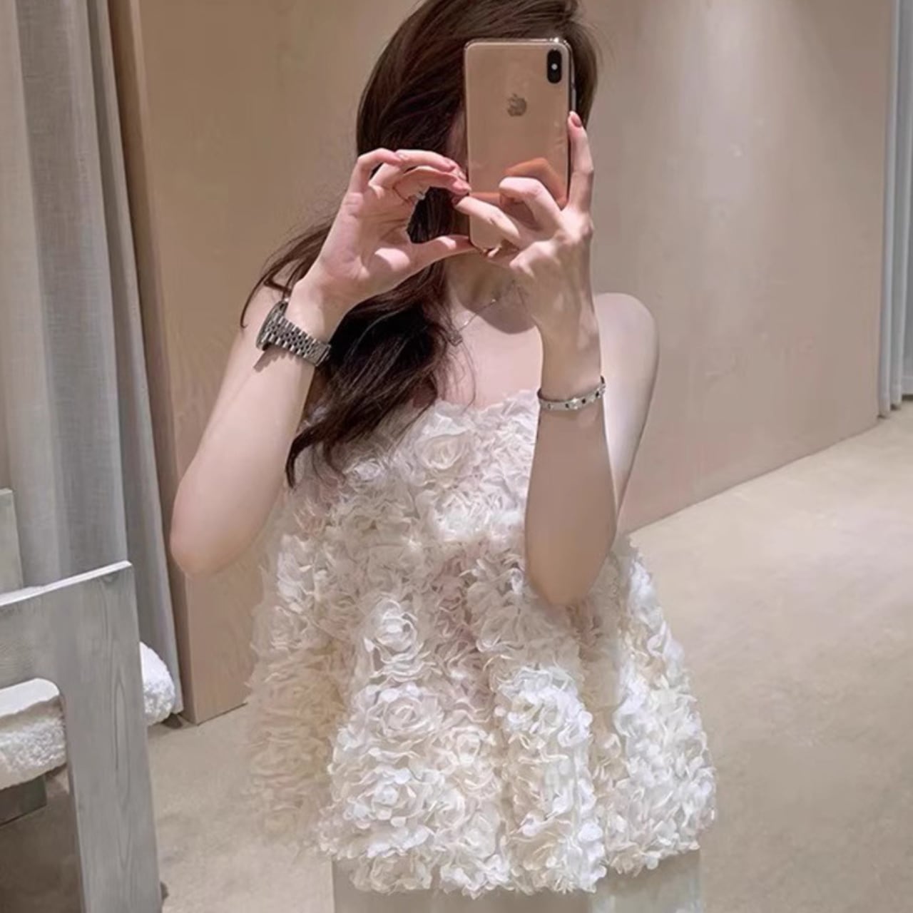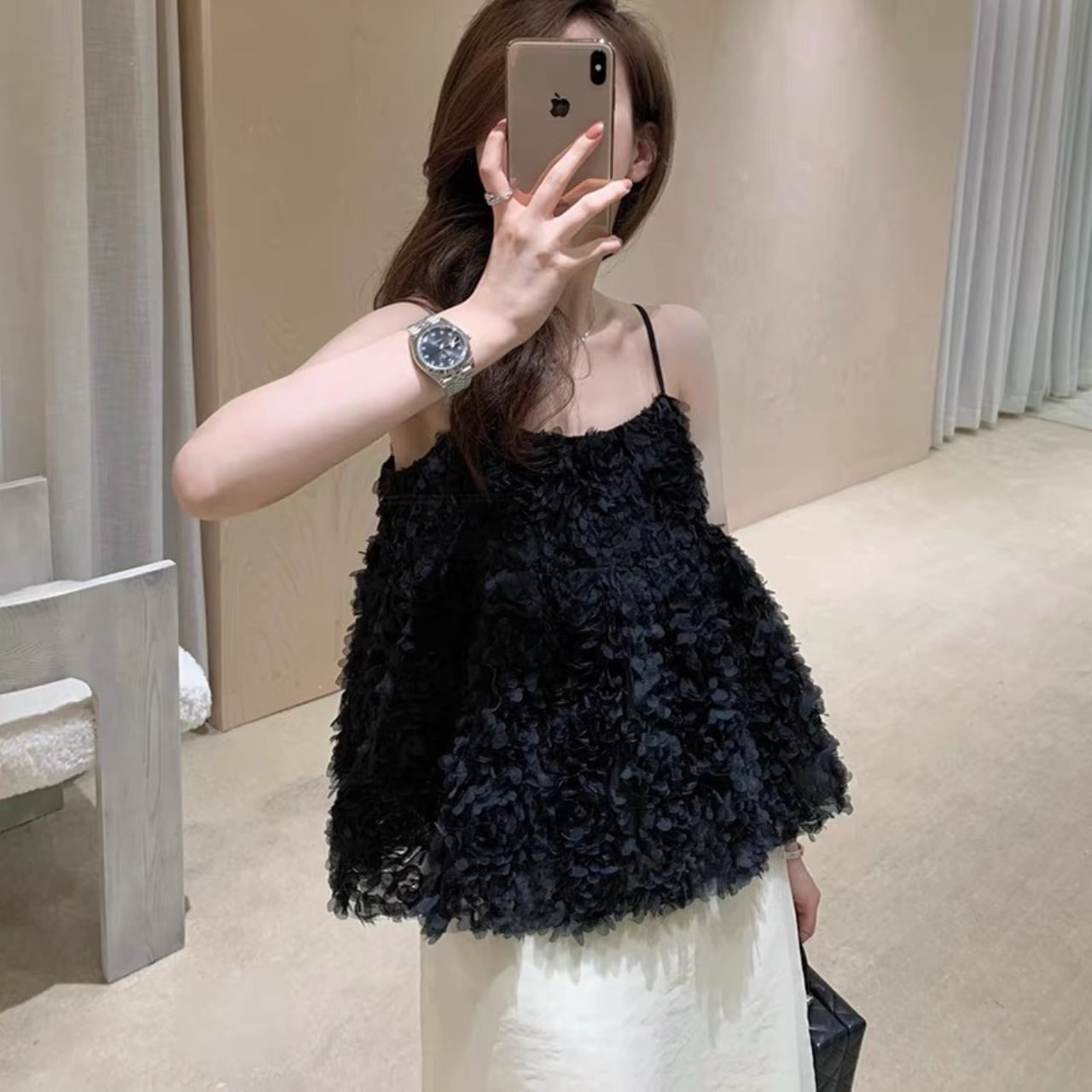 このフラワーキャミソールは、デイリースタイルから特別なイベントまで幅広く活躍します。デニムやスカートと組み合わせてカジュアルに着こなすことも、ジャケットやアクセサリーをプラスしてエレガントなスタイルに仕上げることも可能です。フラワーのディテールが、あなたの魅力を引き立て、女性らしさをさりげなく演出します。
