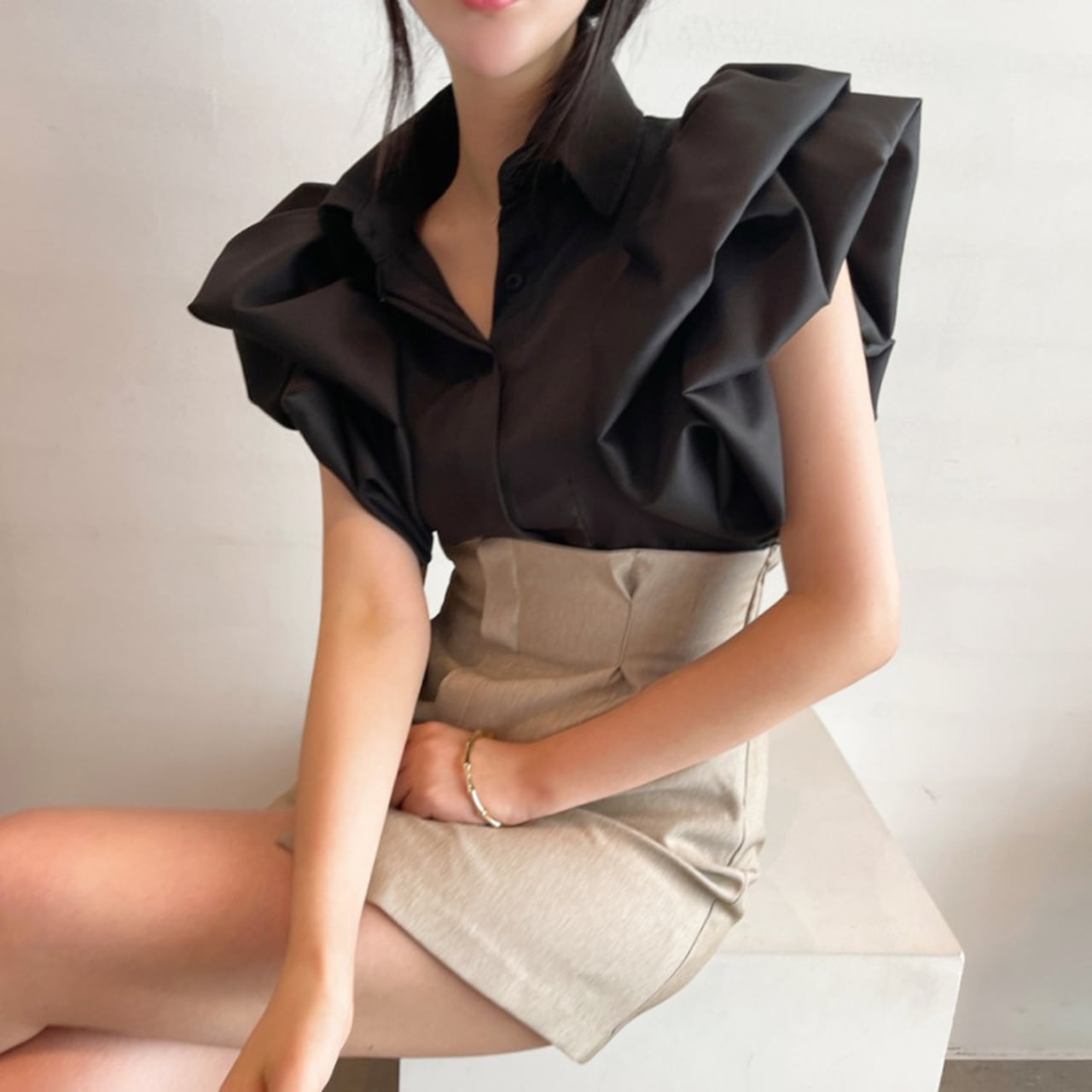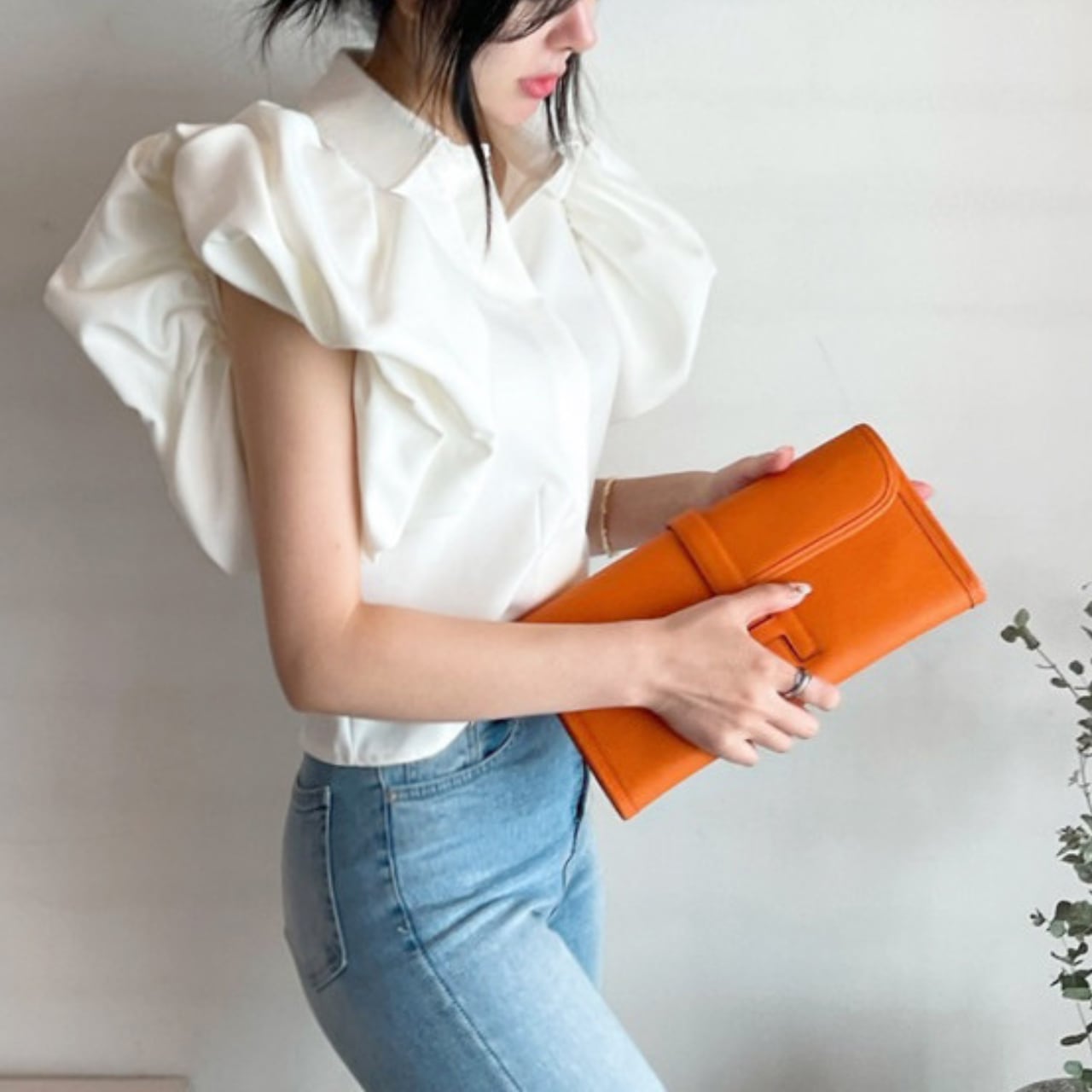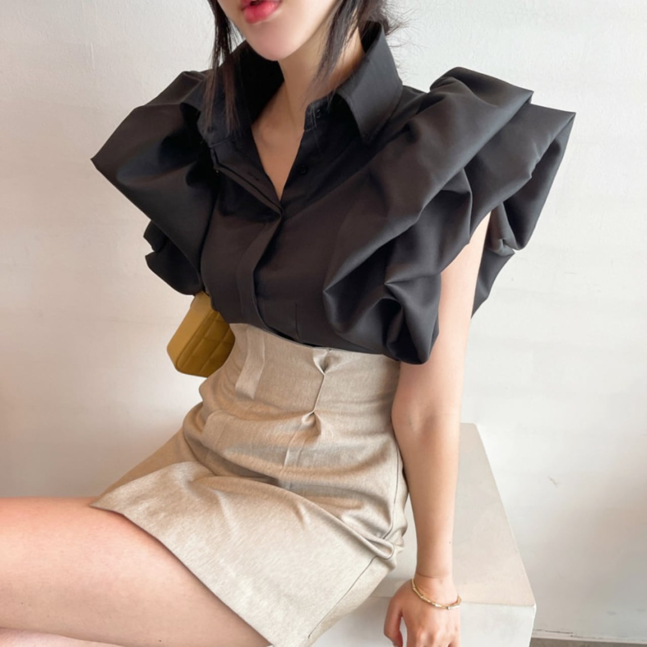 ・新たに登場したボリュームパフスリーブブラウスは、華やかなパフスリーブが特徴のデザインです!シックなブラックと清潔感のあるホワイトの2色展開で、様々なシーンにぴったり。ワンサイズ展開により、多くの体型に心地よくフィットするのが嬉しいポイントです。