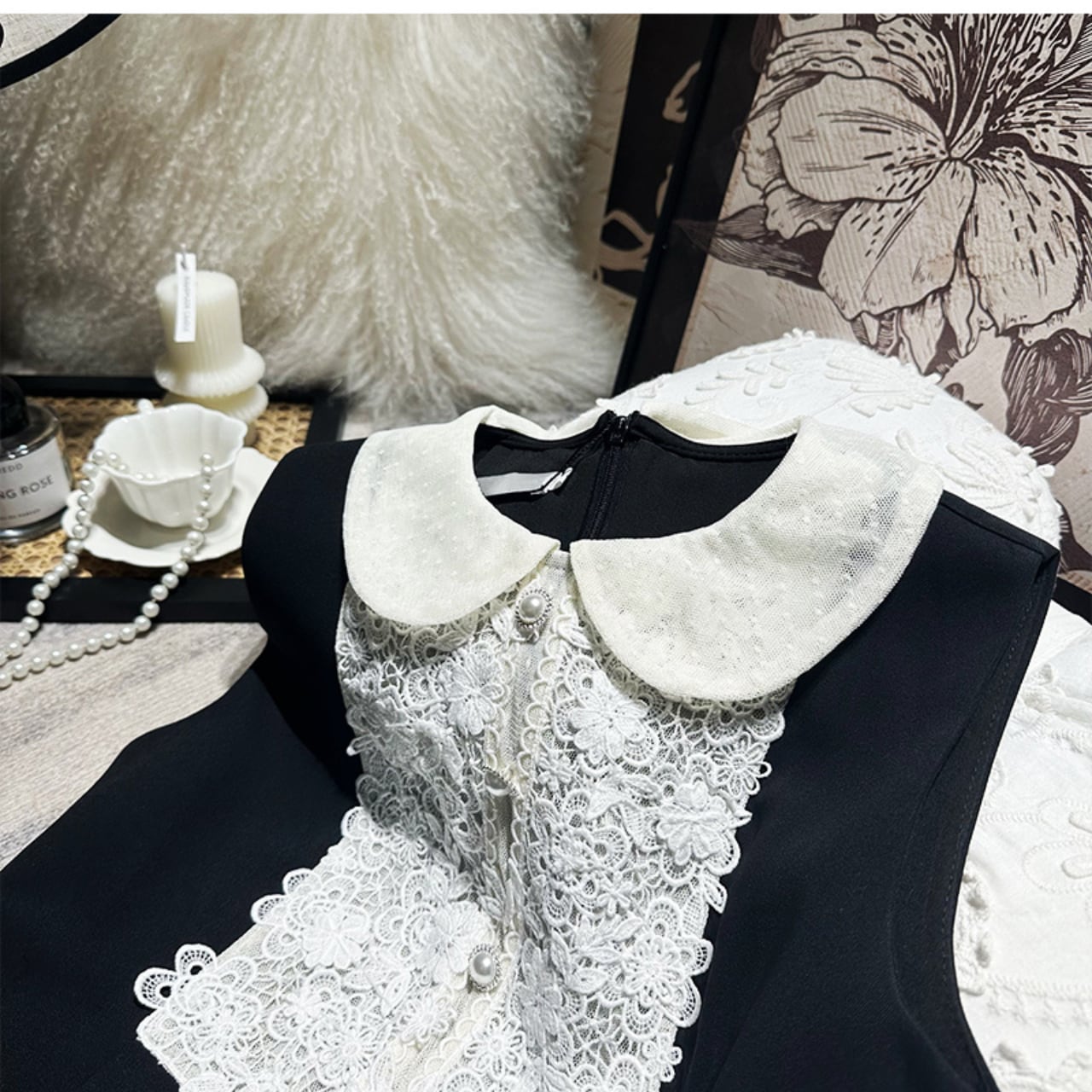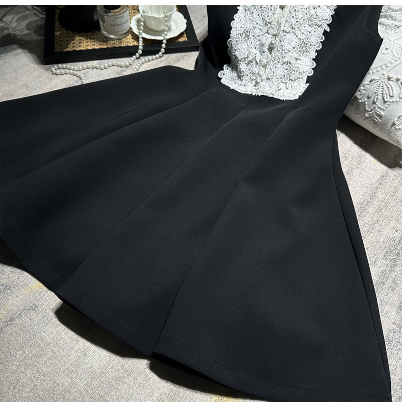 ・新たに登場したノースリーブワンピースは、魅力的なミニ丈と洗練された胸元のレースが特徴のデザインです!シックなブラックで、さまざまなシーンにぴったりフィット。SからLサイズまでの展開で、多くの体型に心地よく合わせられるのが嬉しいポイントです。