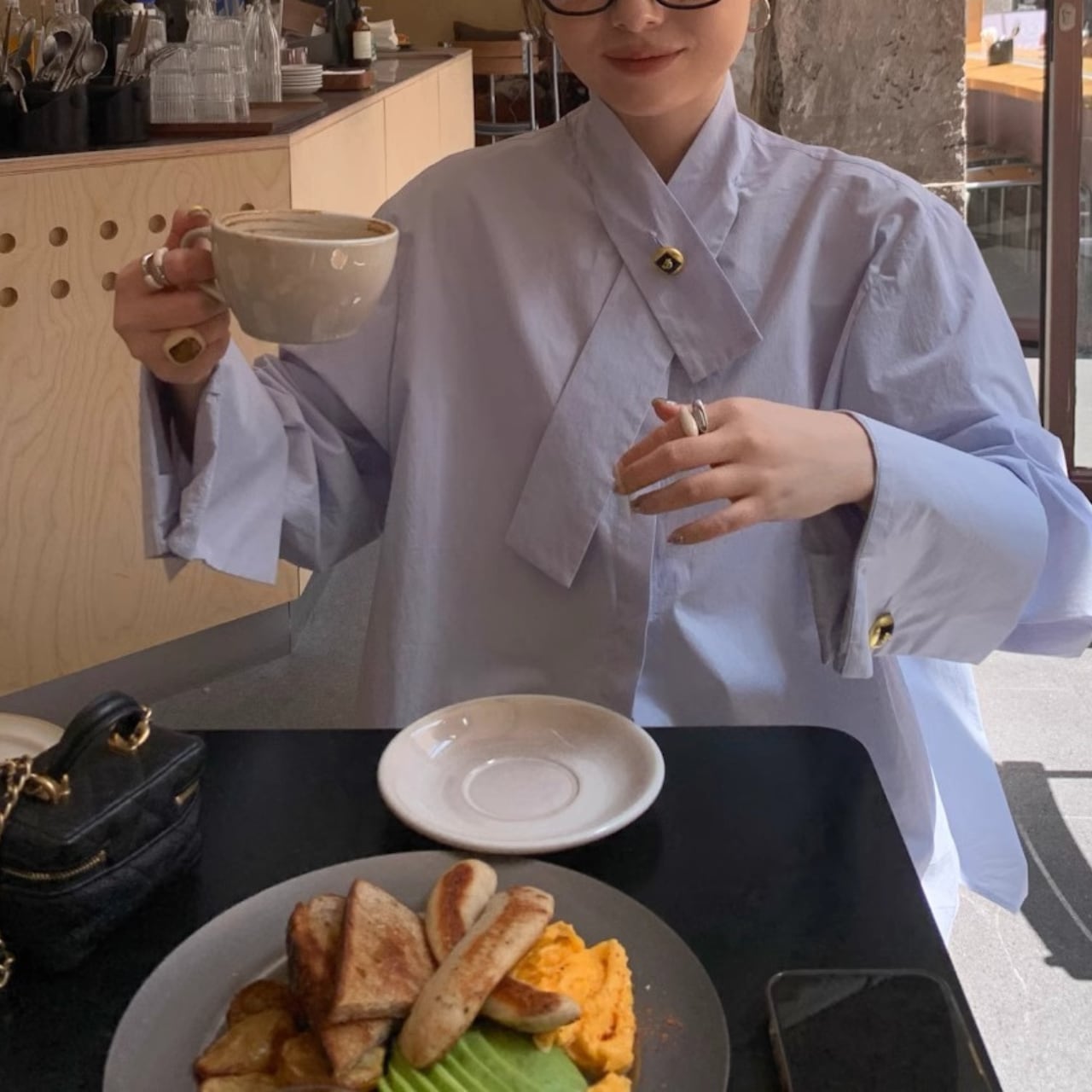 カフェ映え確実】ナチュラルな抜け感×ゴールドアクセで即こなれ感。