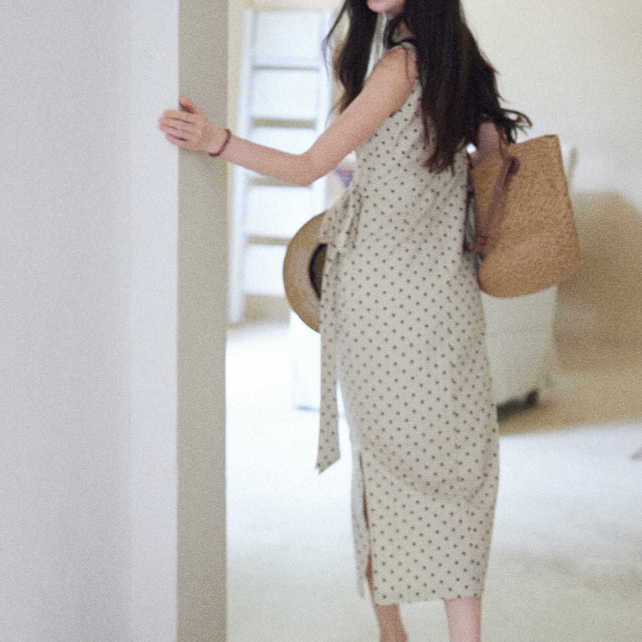 エレガントに夏を楽しむ、ドット柄ラップワンピース