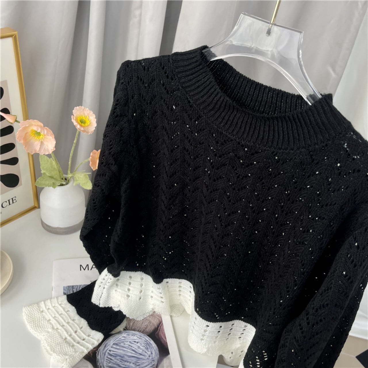 バイカラーレースニットトップス a318