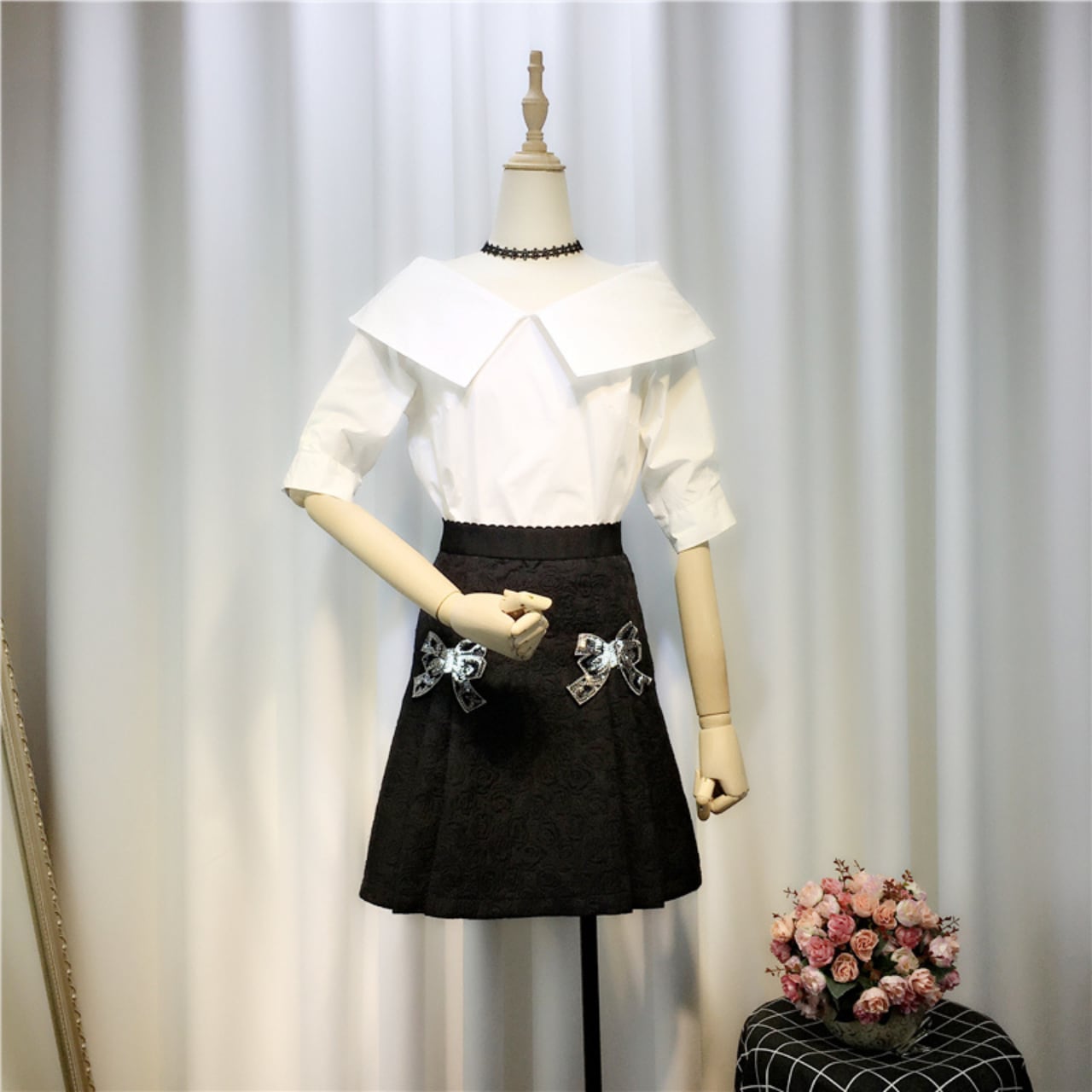 袖:半袖(やや長めの五分袖に近い)