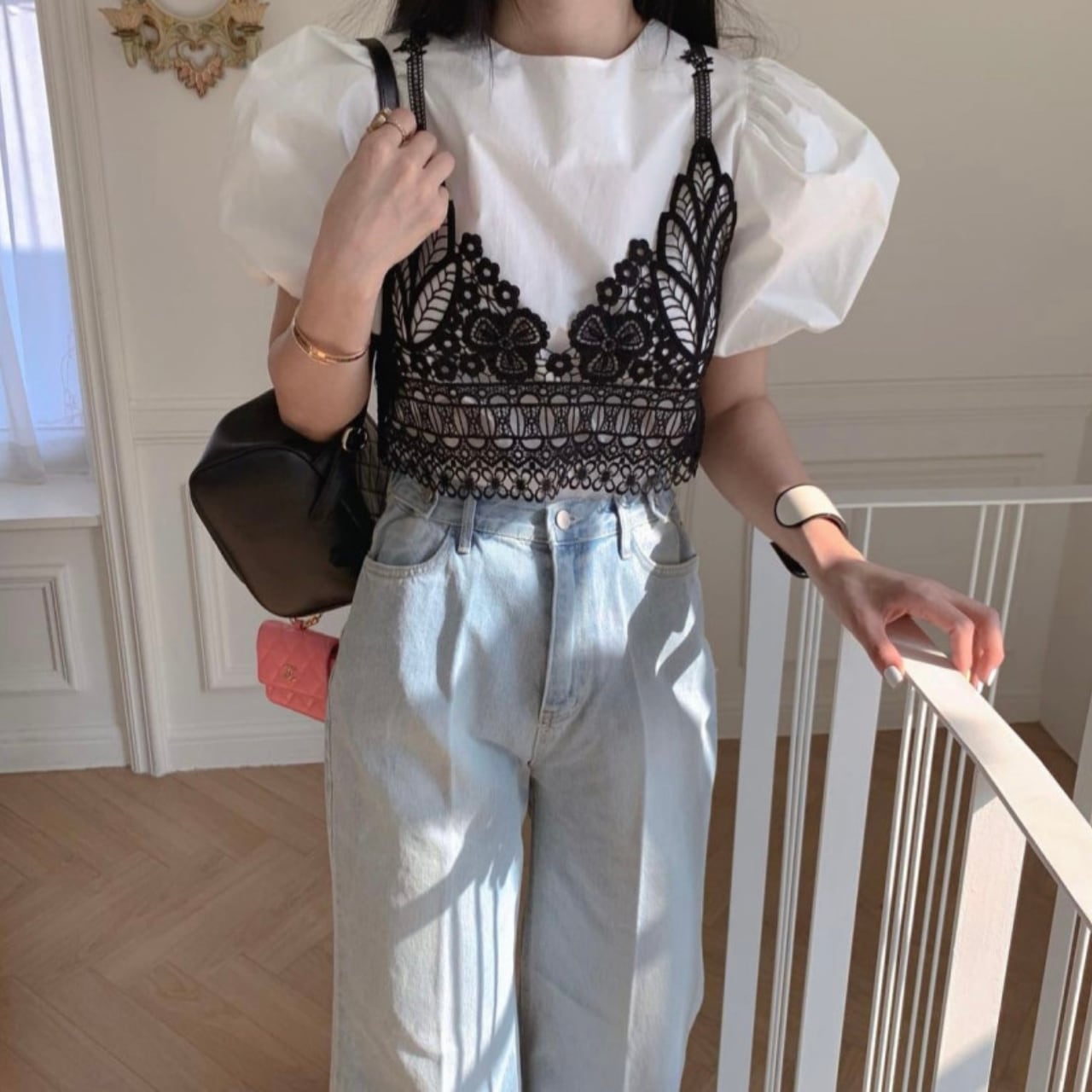 デニムやスカートに合わせるだけで、旬のレイヤードスタイルが完成します。