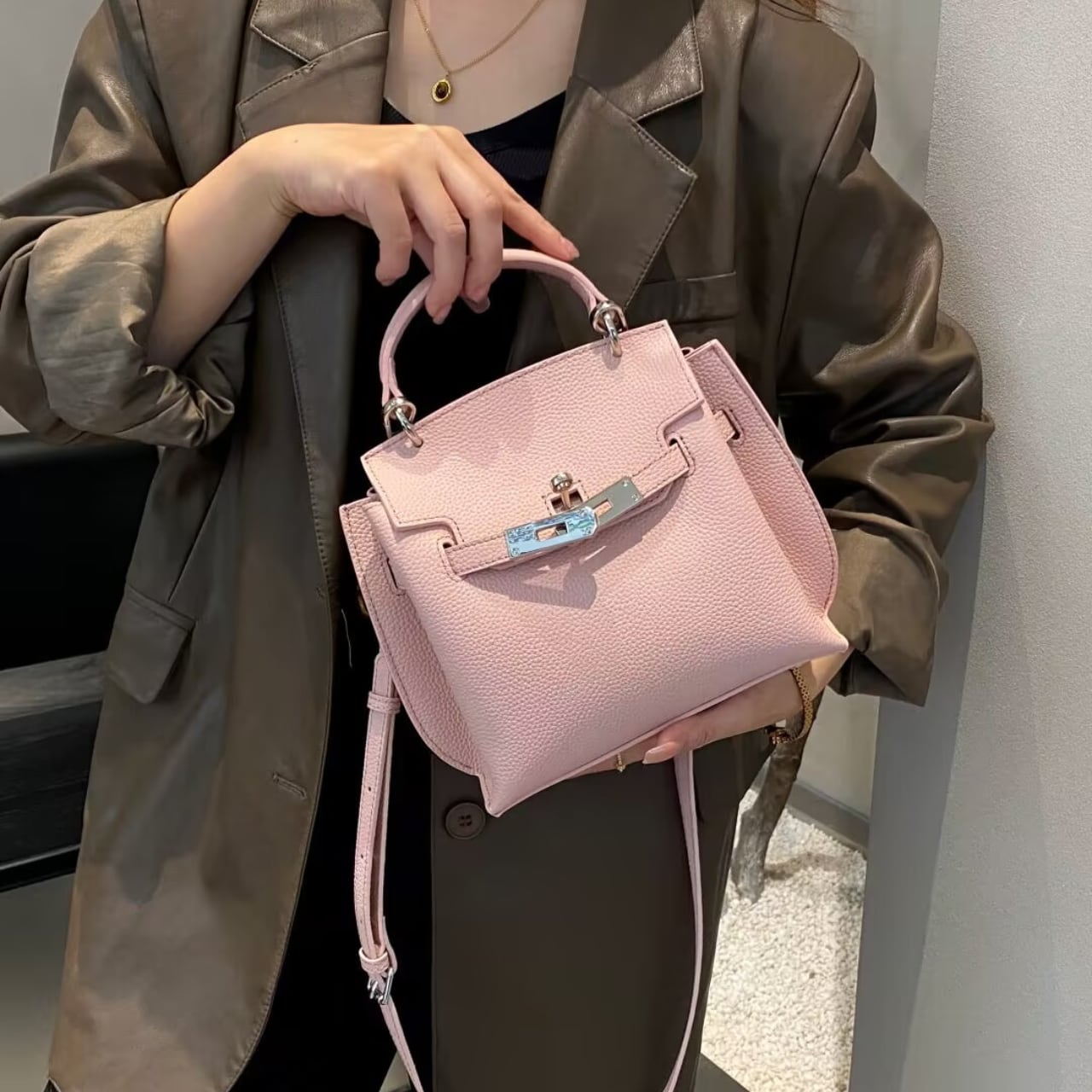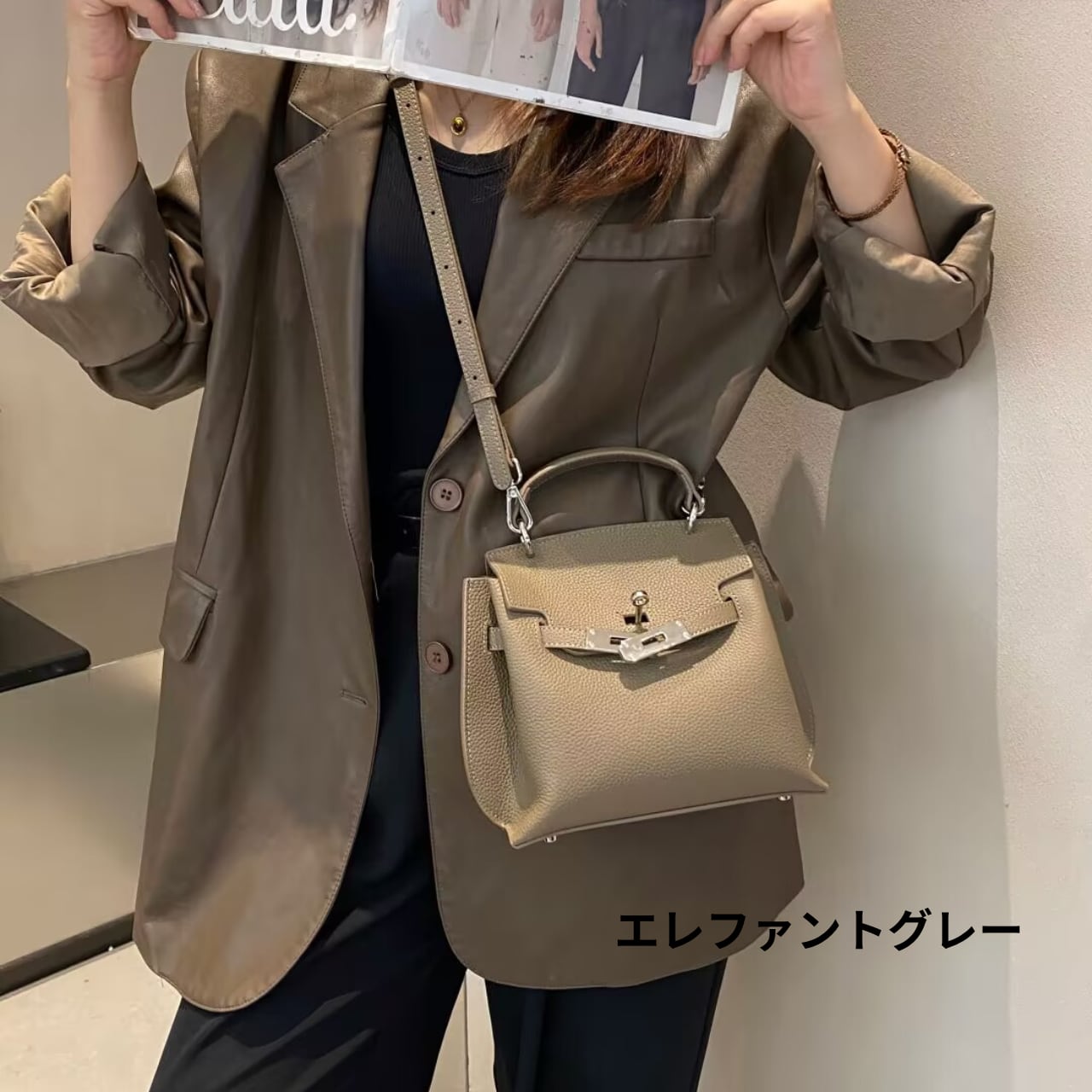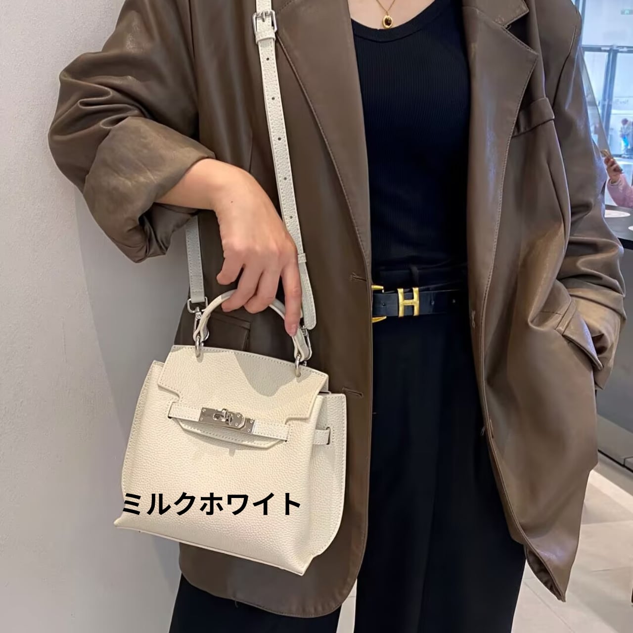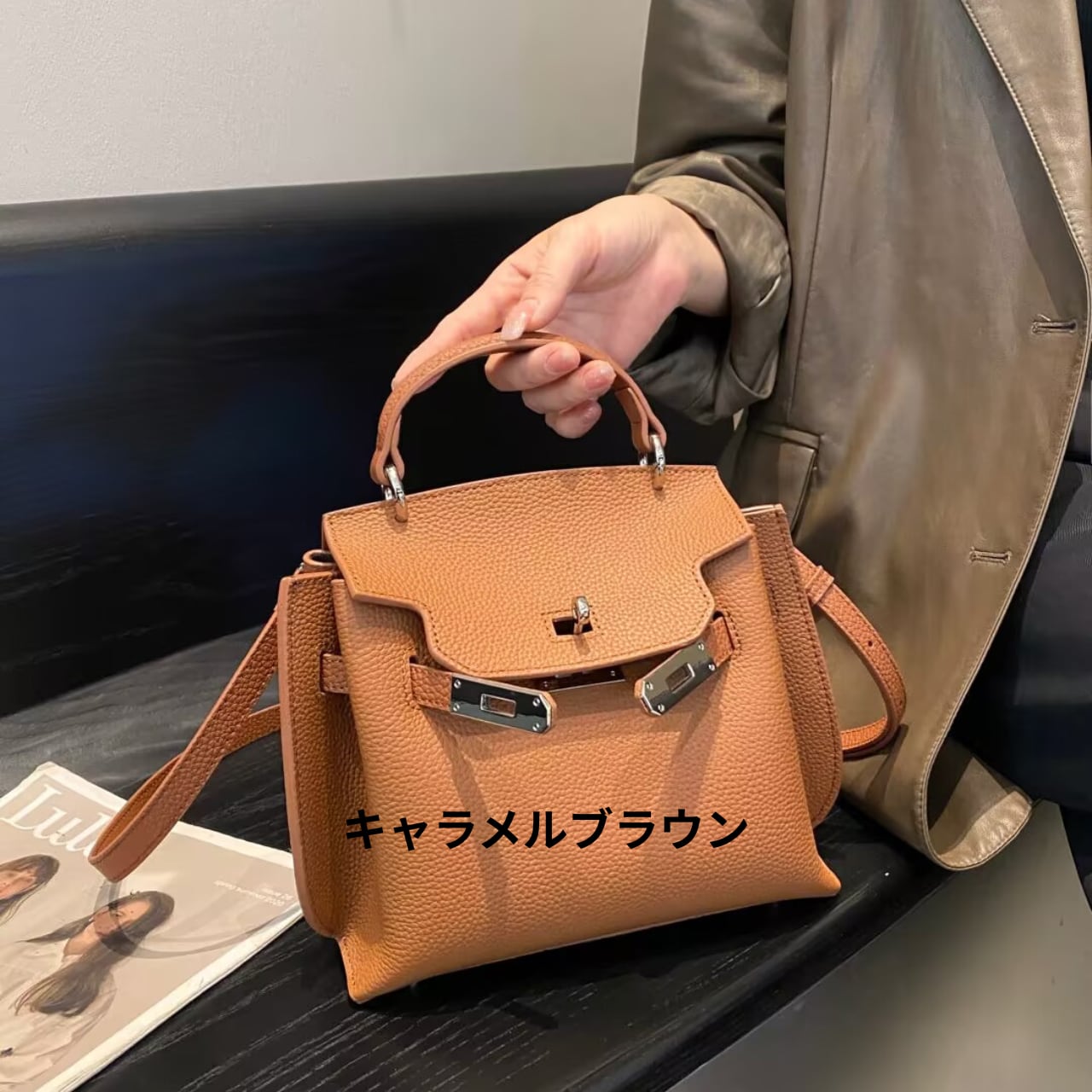 上質な“頭層牛皮(トップレザー)”を使用したミニサイズのトップハンドルバッグ。