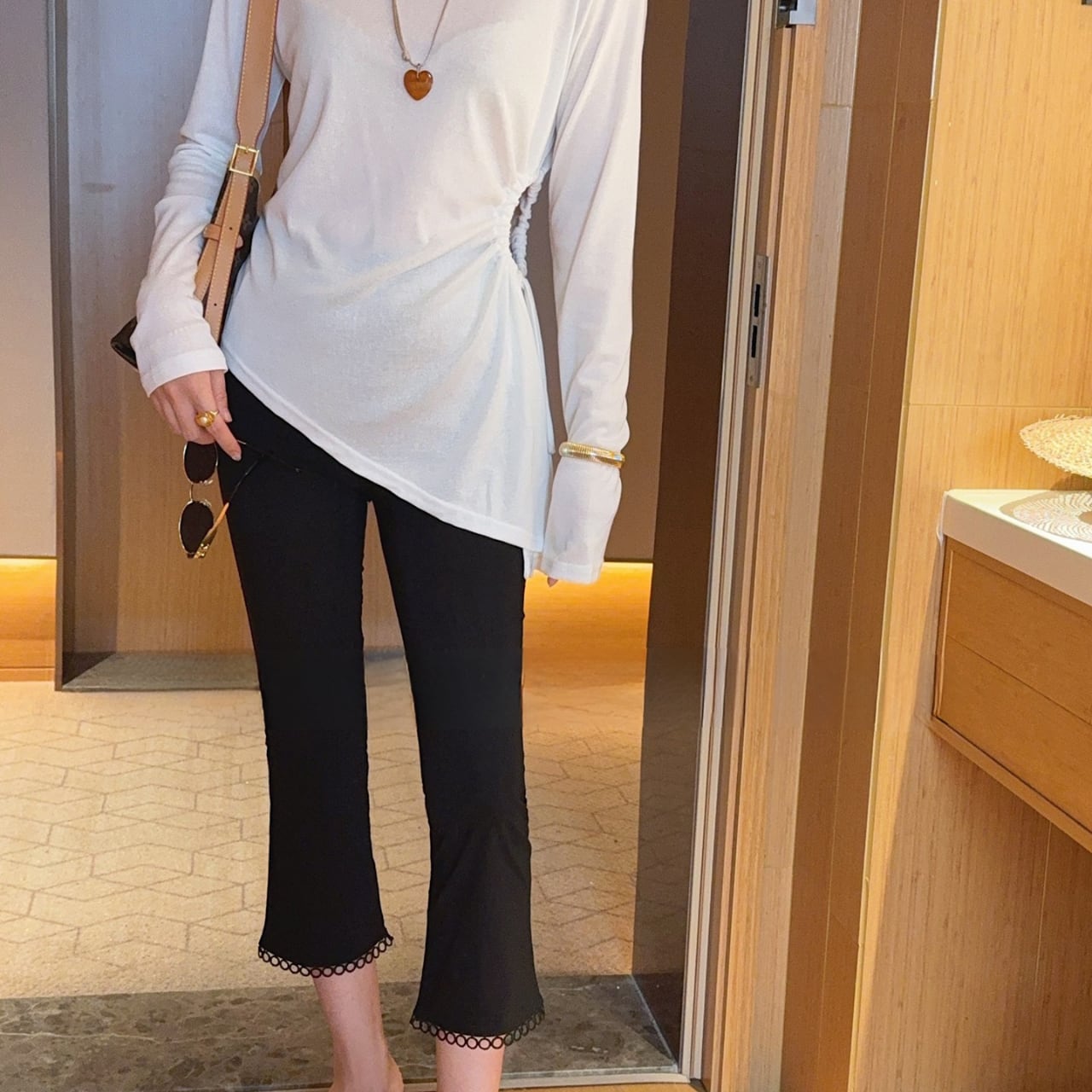 裾にループ状レースをあしらい、足首細見え
