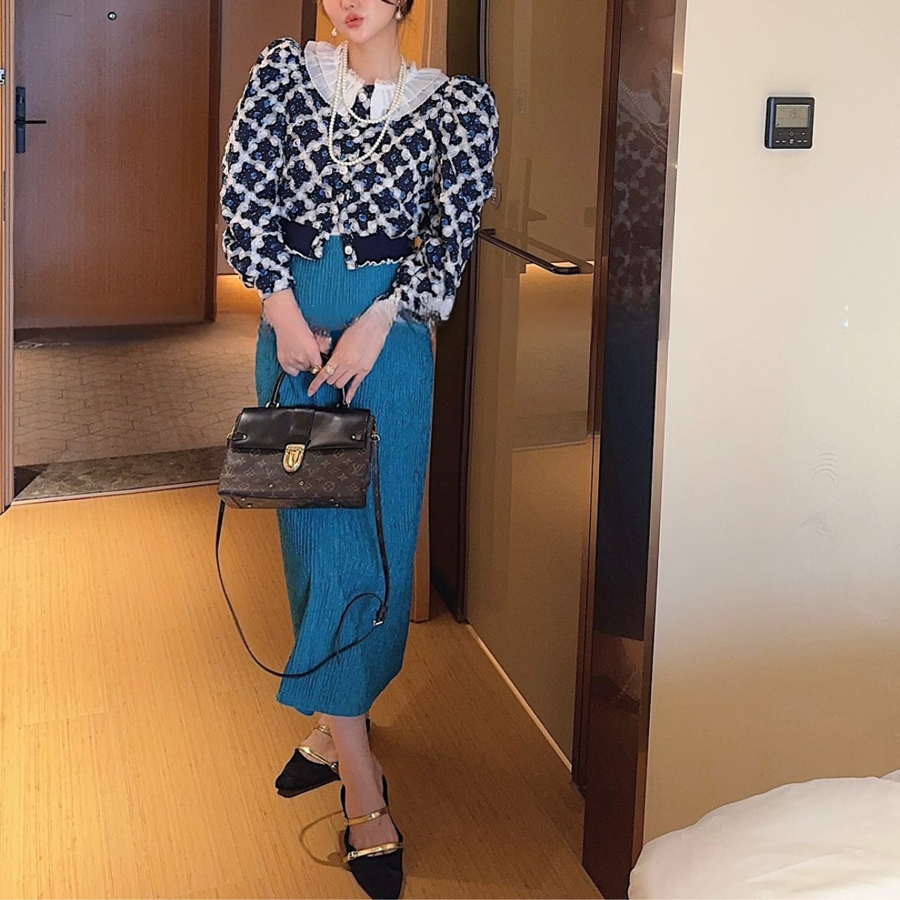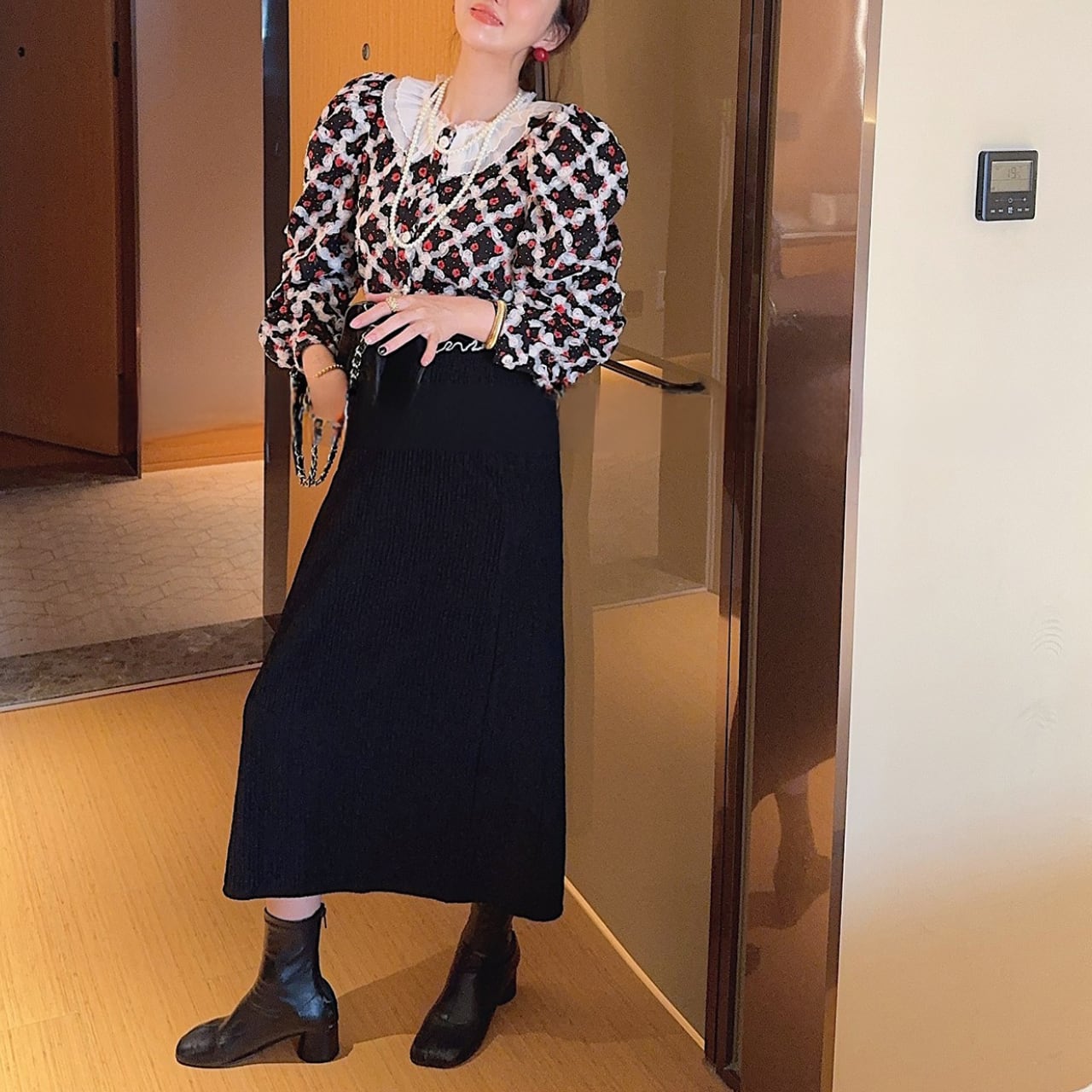 ふんわりパフ袖と短め丈でハイウエスト合わせが抜群