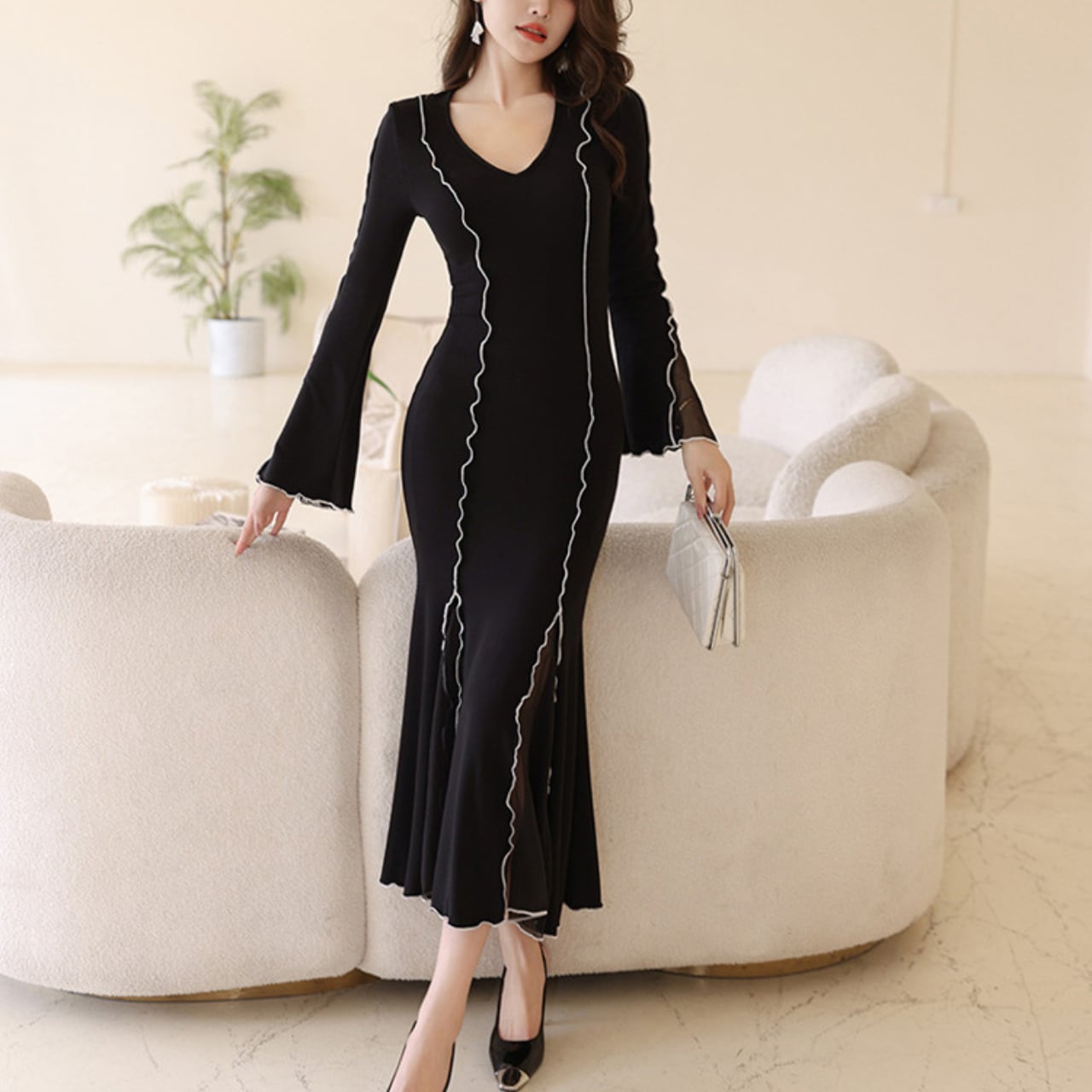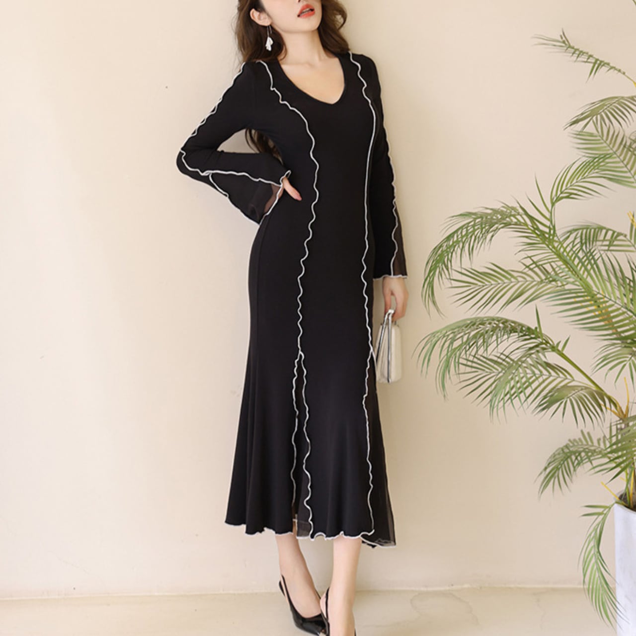 縦ライン×マーメイドで“すっきり見え”。1枚でフェミニンもモードも。