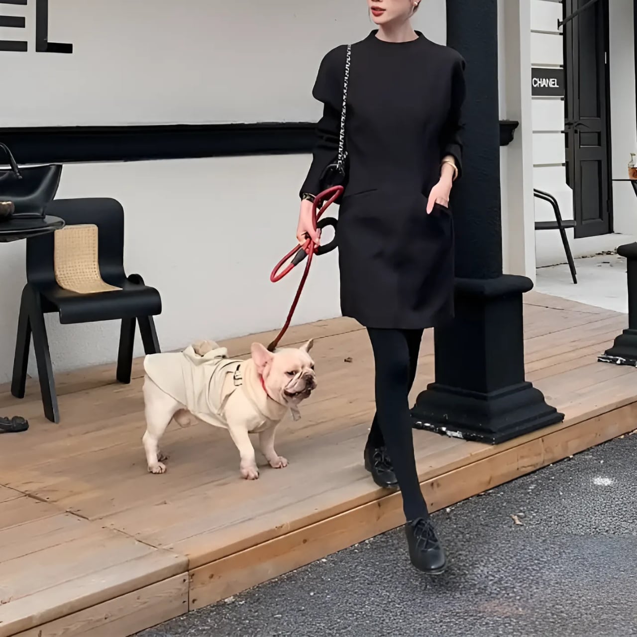 「一枚で“きちんと可愛い”。膝上Aライン × ハーフネックで、秋の主役はこの黒。」