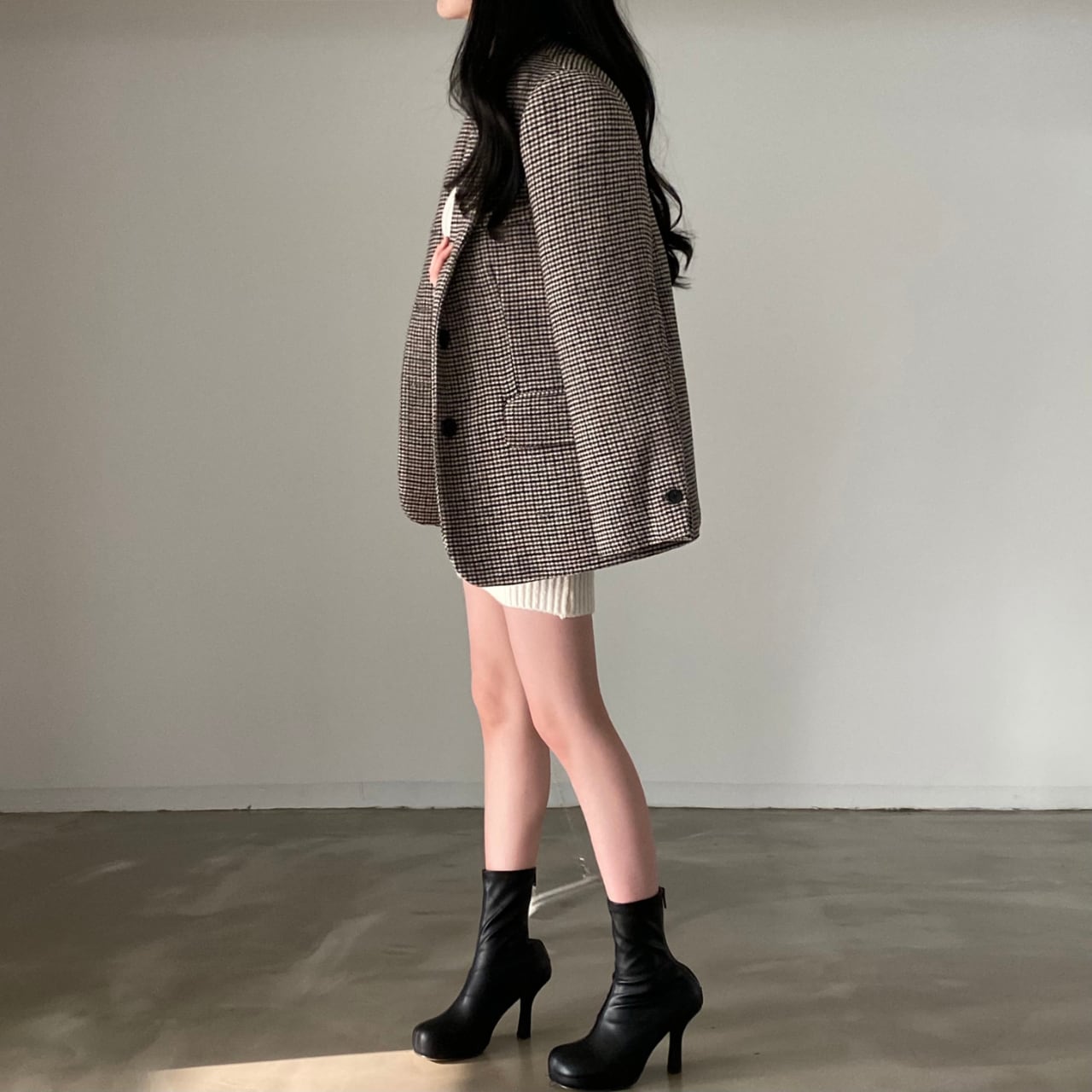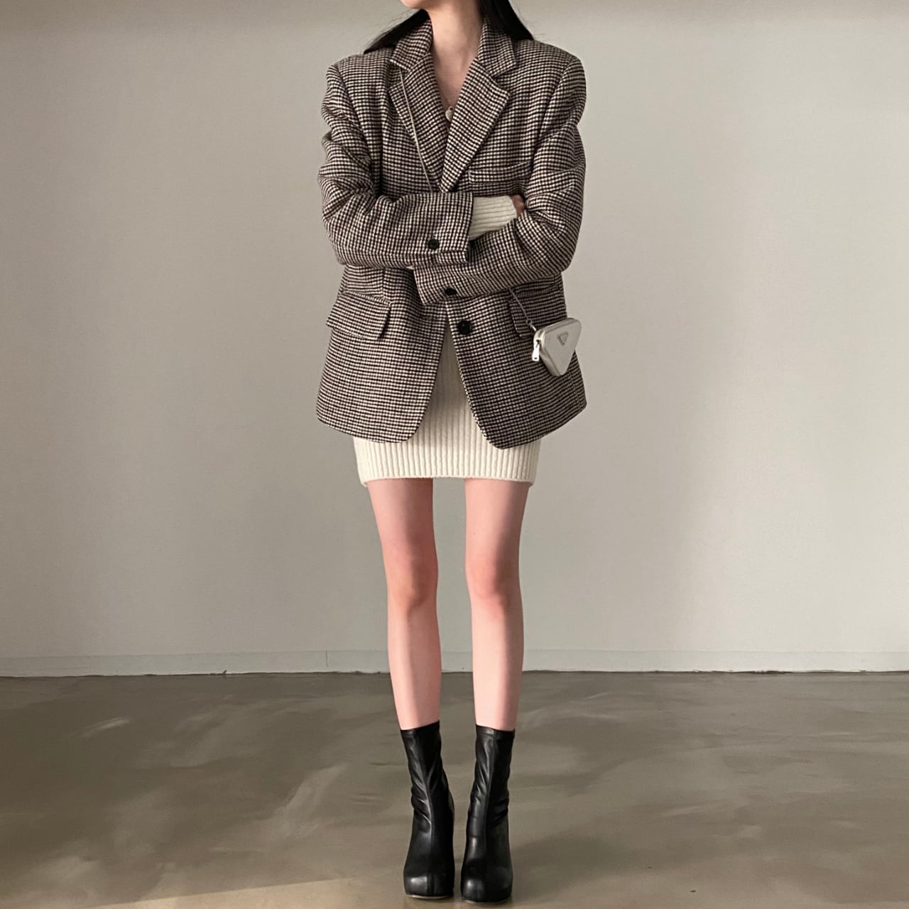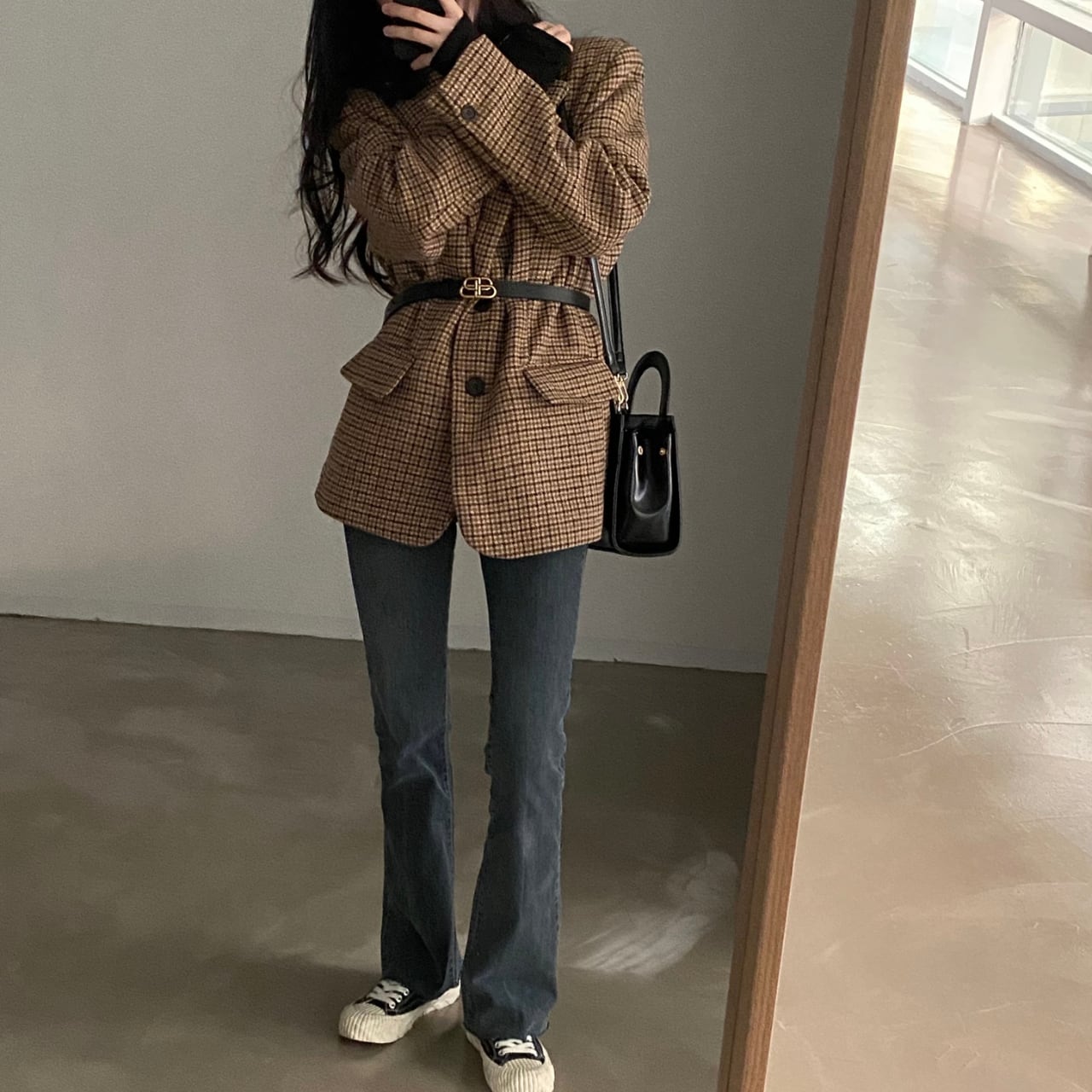 さっと羽織るだけでコーデの主役になるチェックジャケット。程よい厚みの生地に肩パッドを忍ばせ、肩のラインをすっと整えて小顔見え&スタイルアップ。ゆるめの身幅と**ミドル丈(着丈72cm)**で、デニムからワンピースまで幅広くマッチします。フロントはボタン開閉、通勤・きれいめカジュアル・大人ストリートまで、秋から春先まで長く活躍。