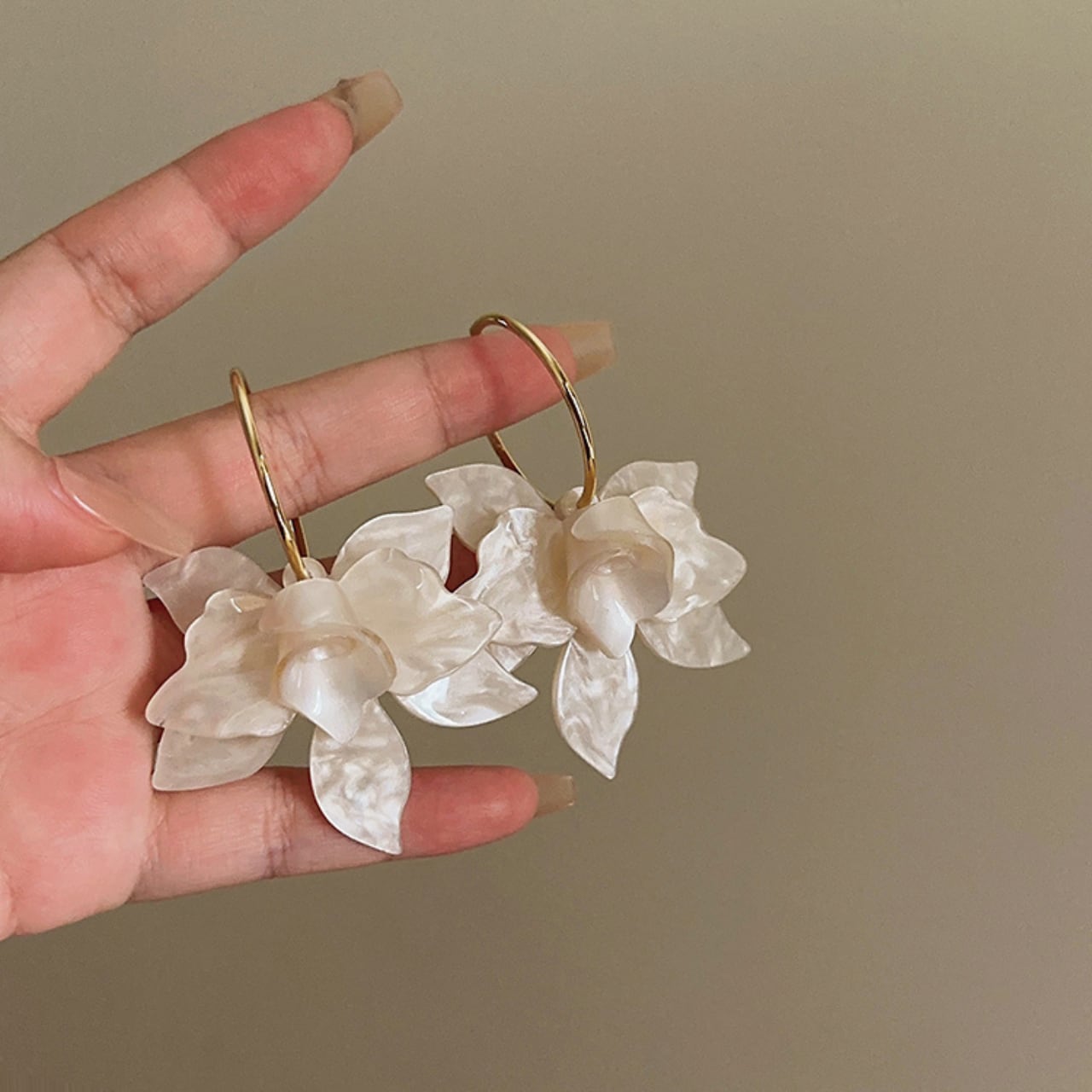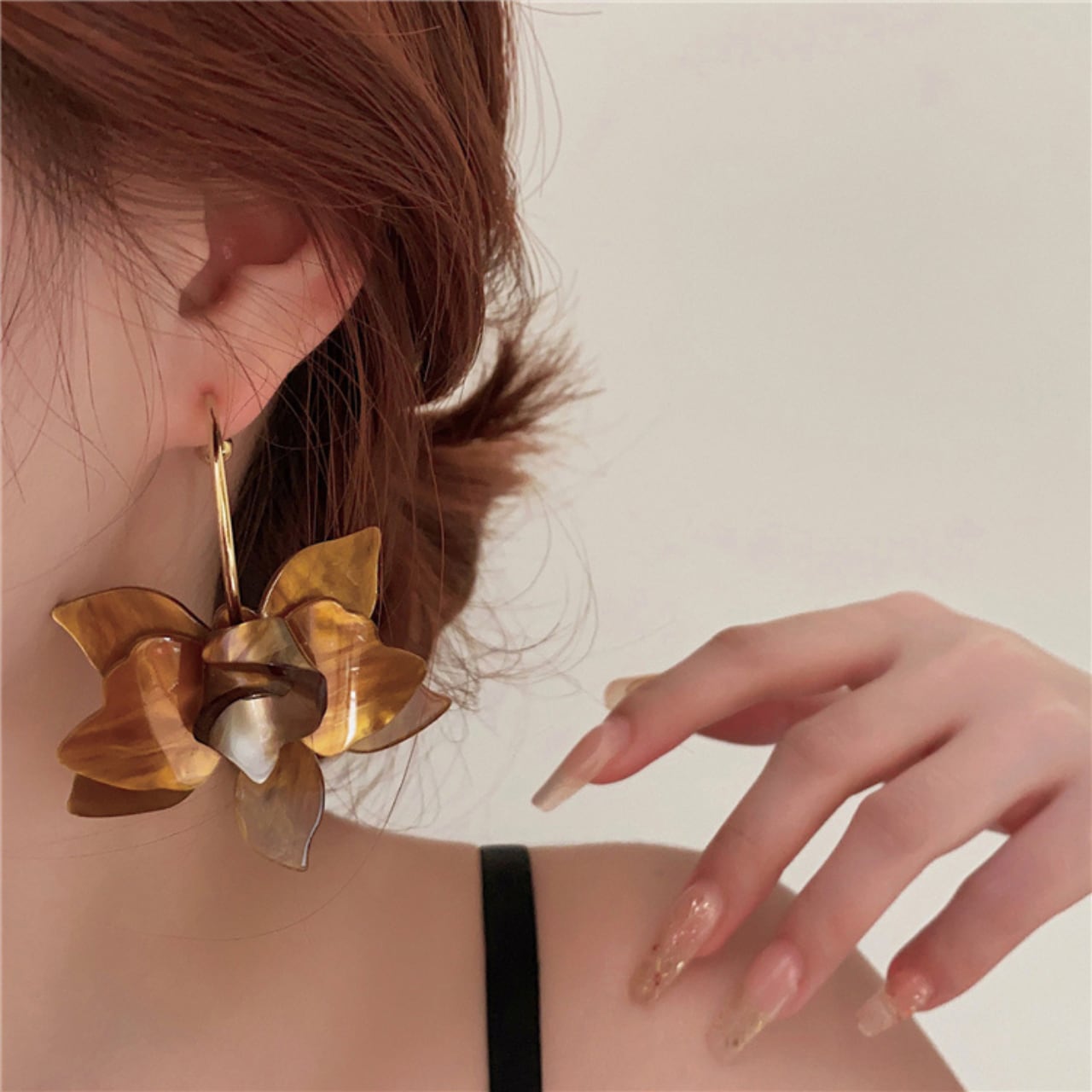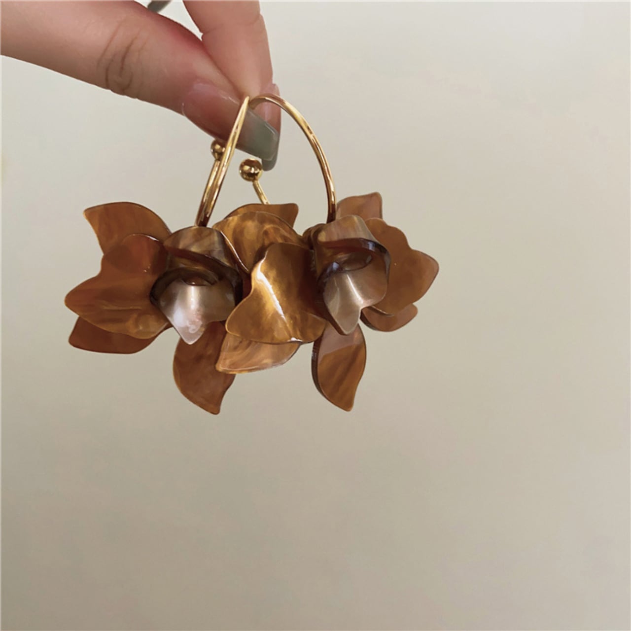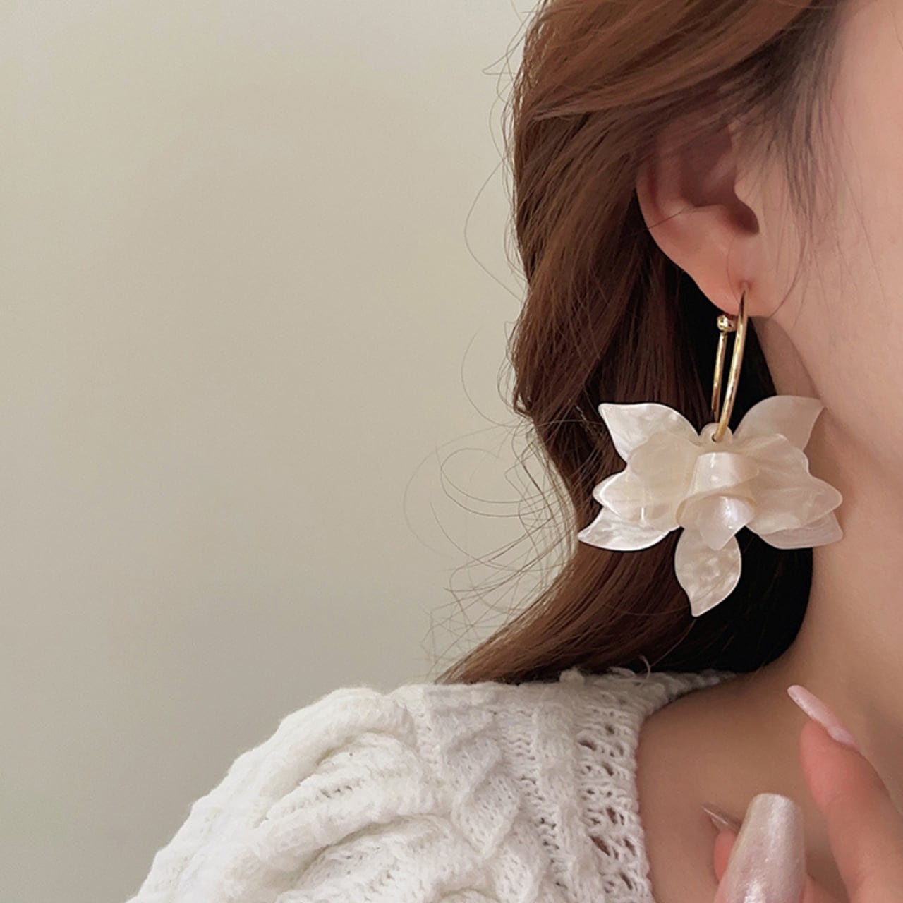 ・動くたびに花びらがゆらめき、肌映えと小顔効果を両立。ニットやワンピの“マンネリ打破”にちょうどいい存在感です。