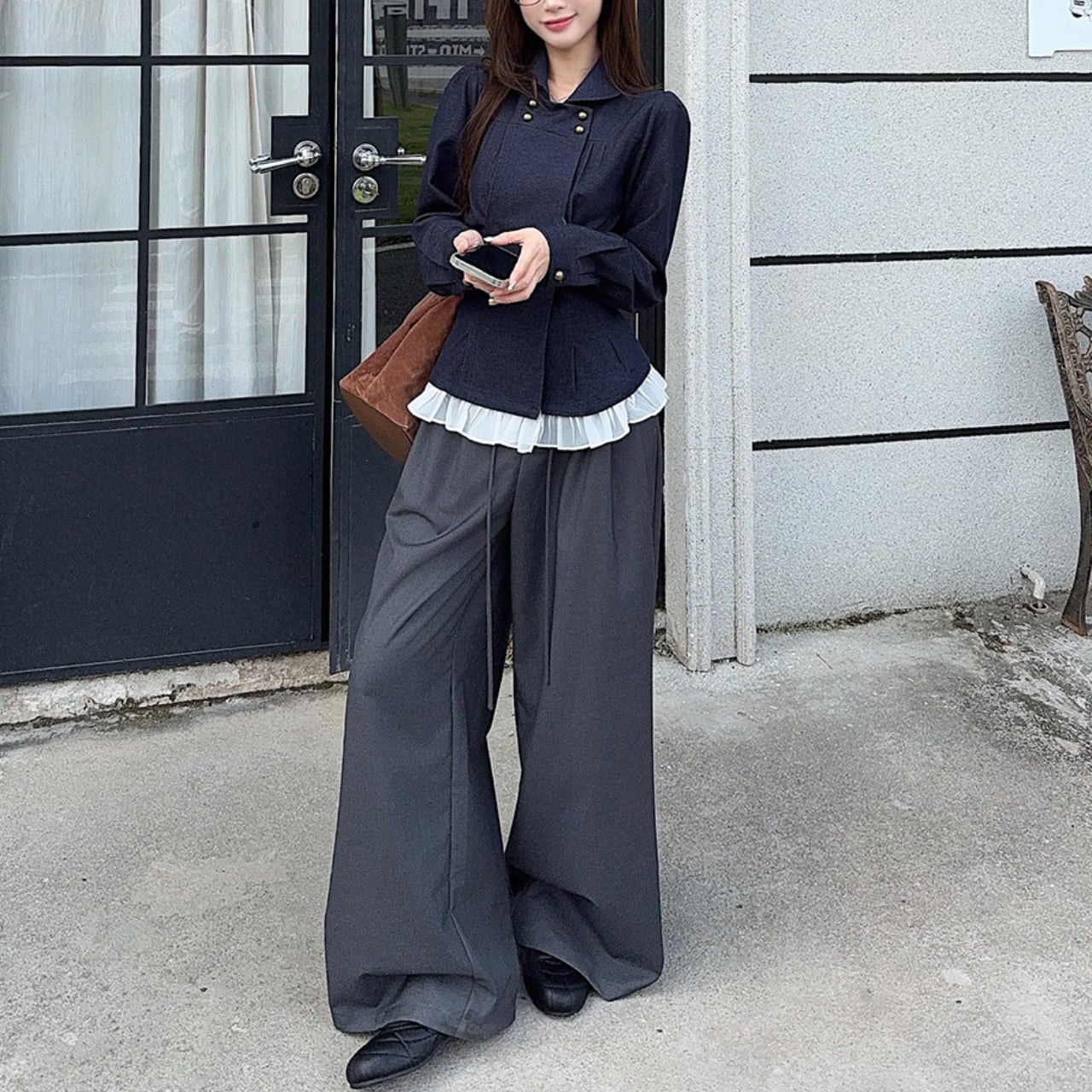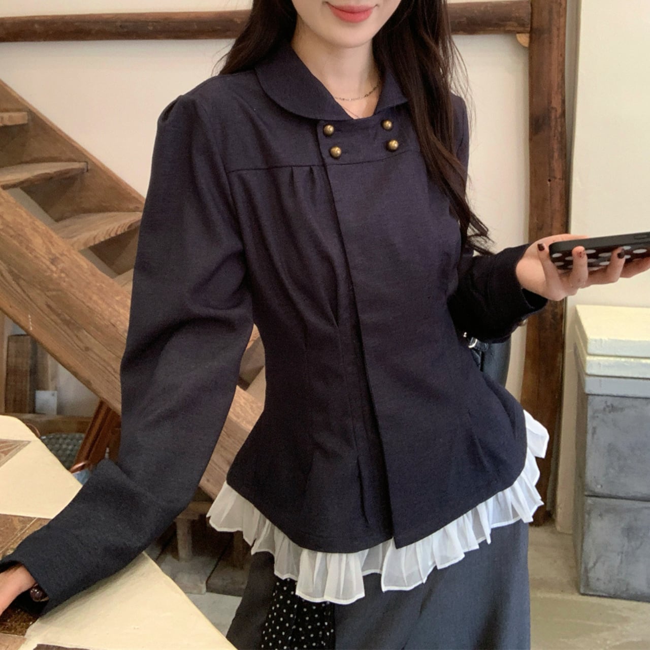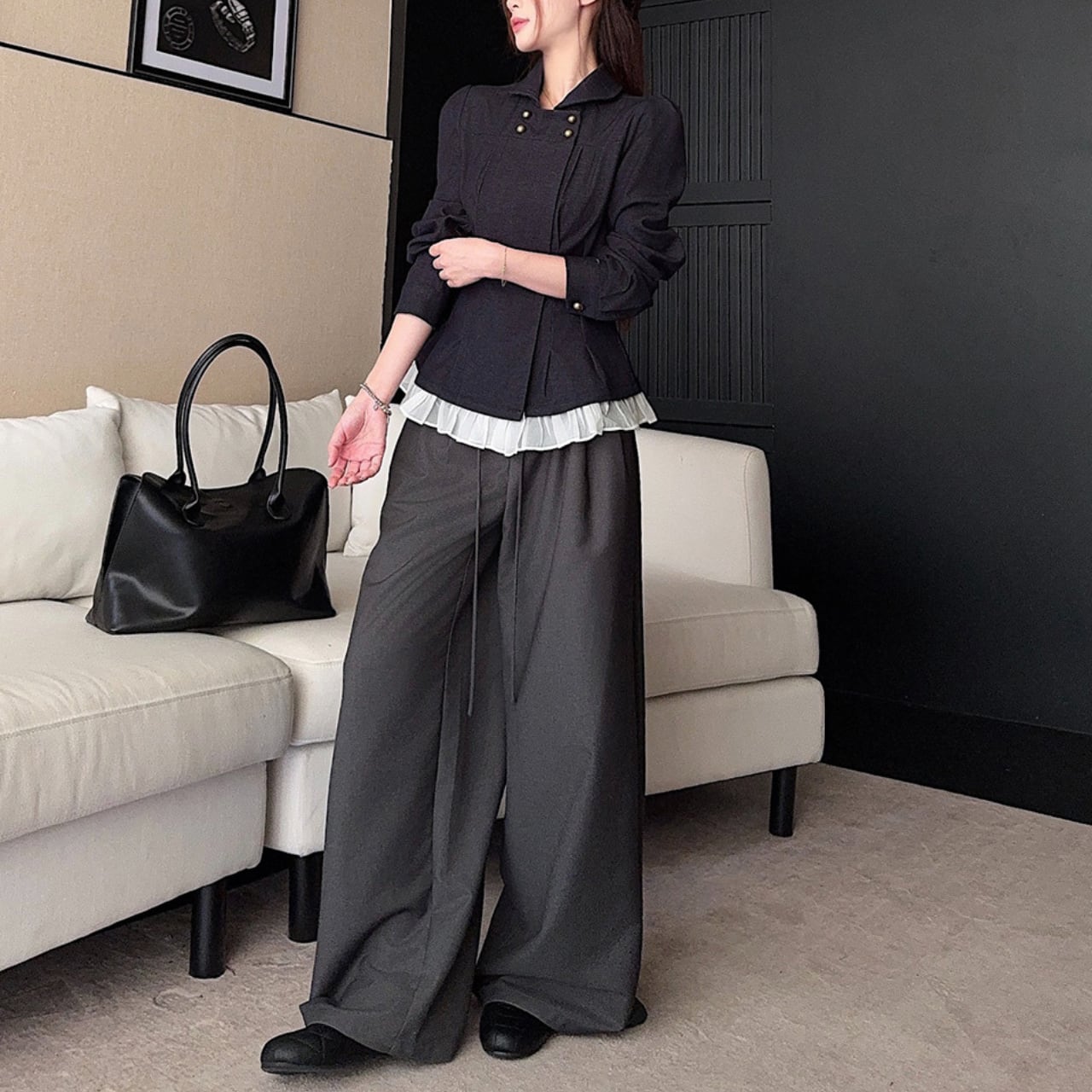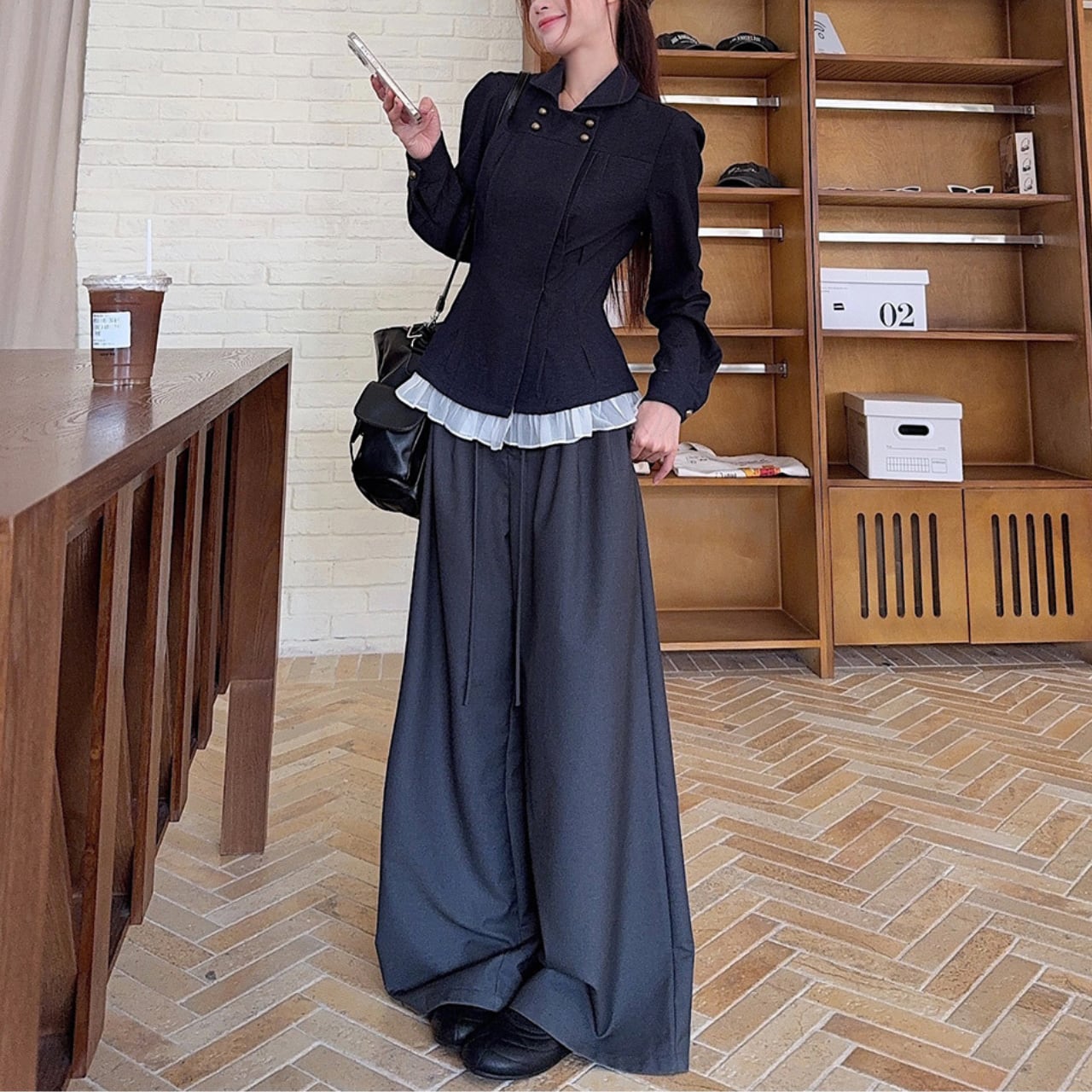 立体的なセーラーカラーに金ボタンを並べた、上品マリンなデザイン。ウエストに入った縦シームで自然にくびれ見せ、裾はふんわりシフォンのレイヤード。1枚でコーデが完成する“着映えトップ”です。中厚で透けにくく、二の腕や腰まわりもスマートにカバー。通勤から週末カフェまで、きちんと感と可愛さのバランスが絶妙。