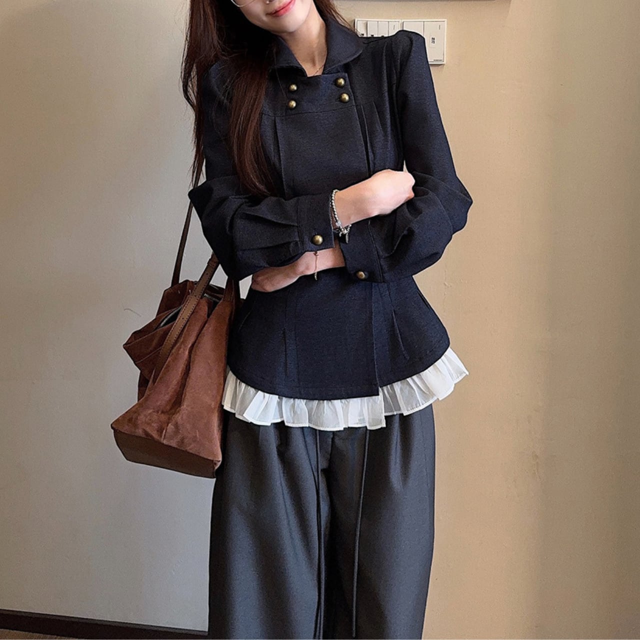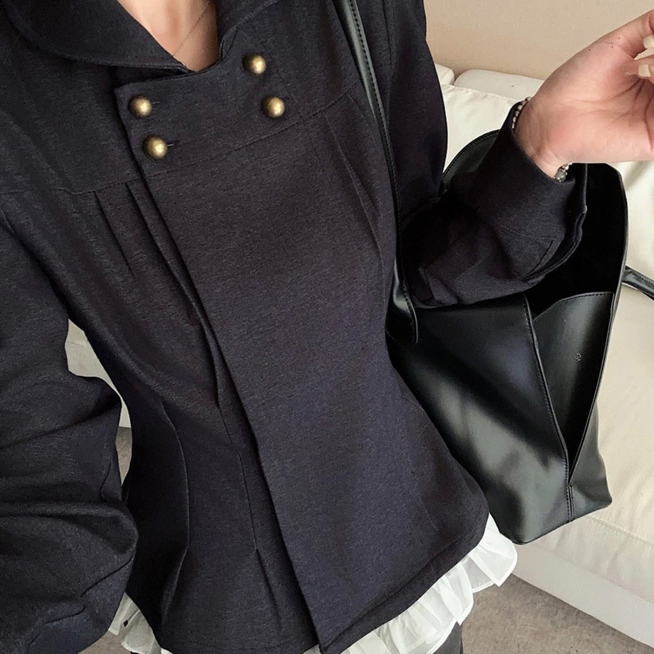 セーラーカラー×ダブルボタンで顔まわりを華やかに