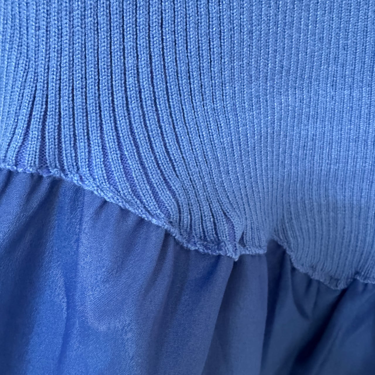 伸びのよいリブニットと軽やかな布帛スカートをドッキング。