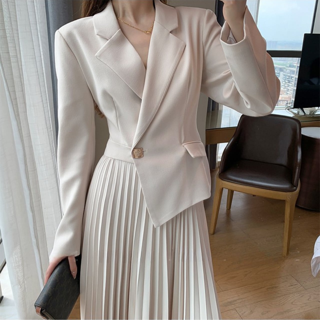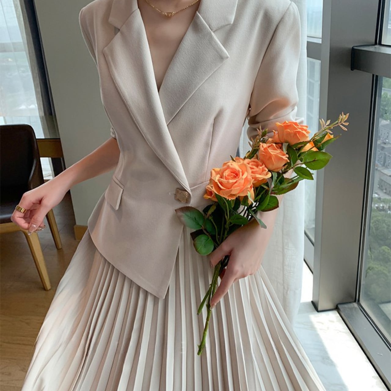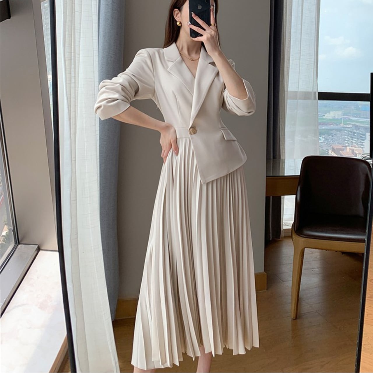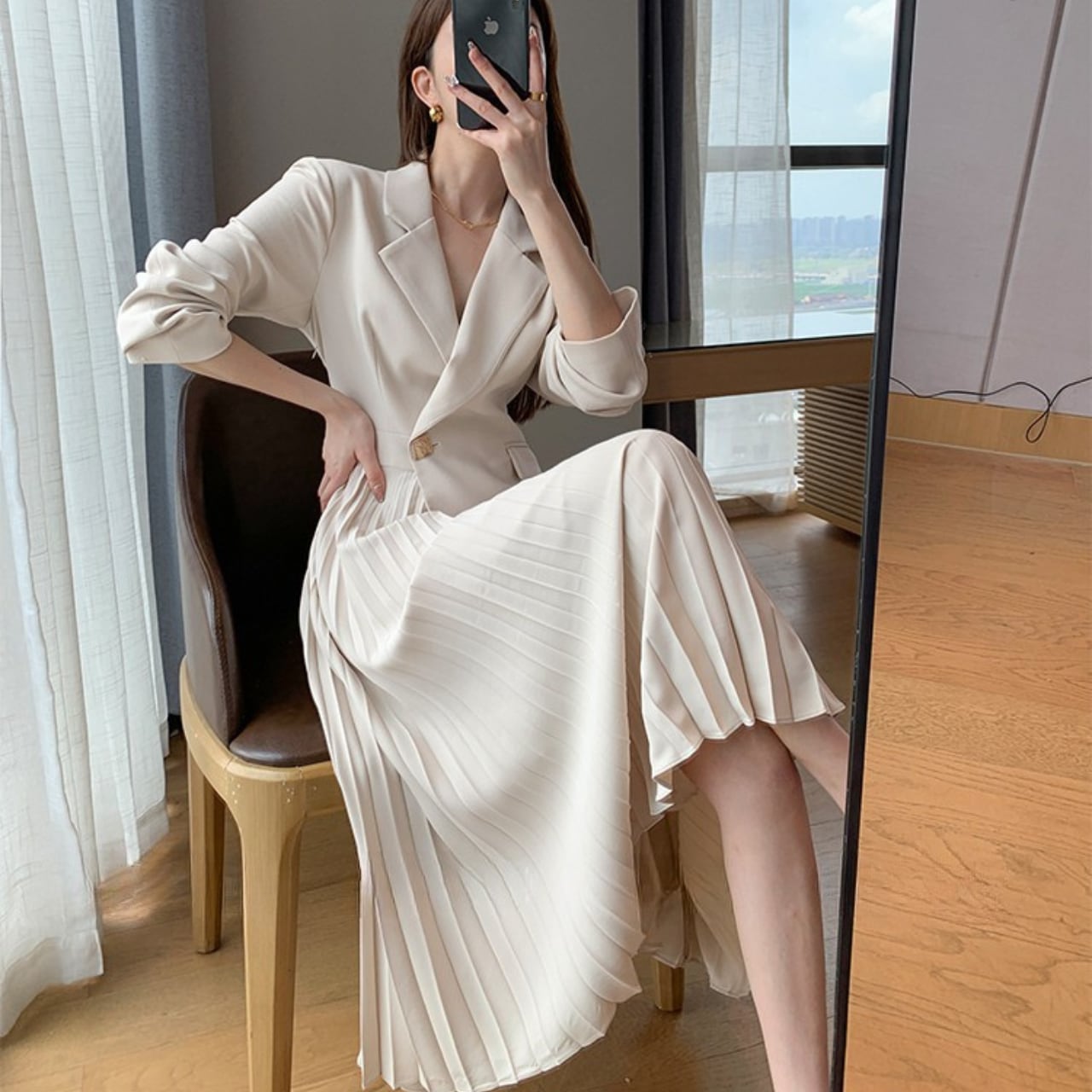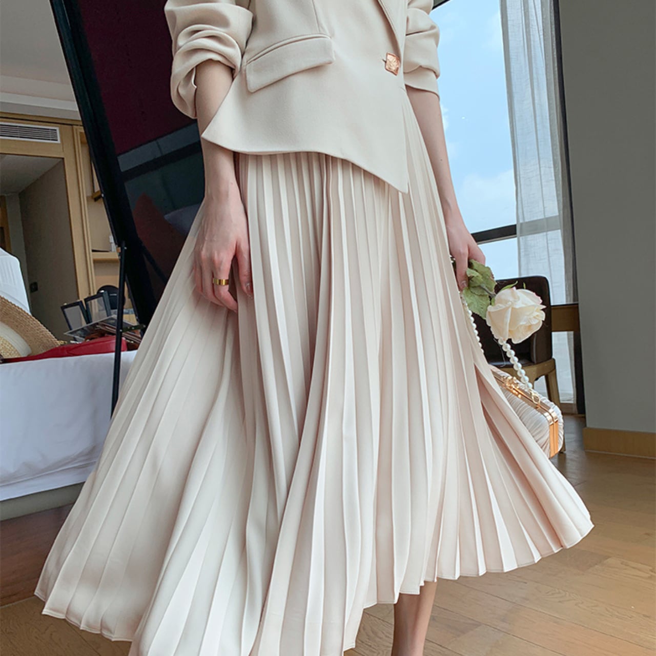 上品なプリーツが揺れるたび、洗練された女性らしさを演出。