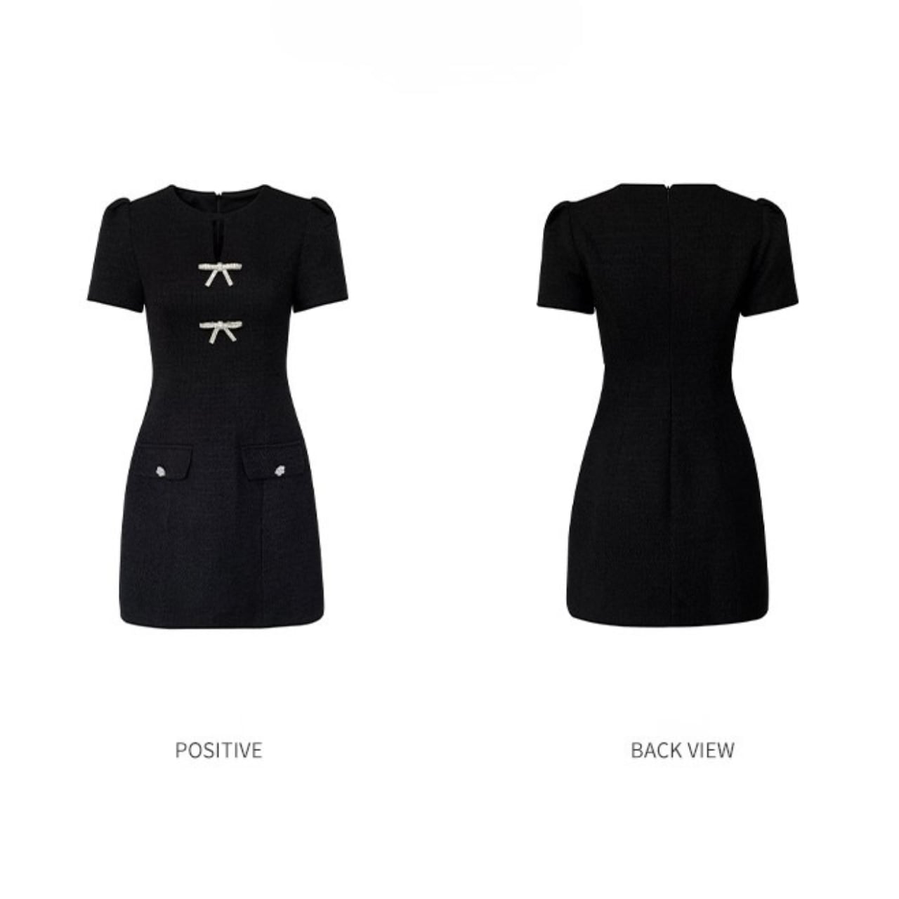 エレガントな女性らしさを引き立てる、上質なツイードライク素材のワンピース。
