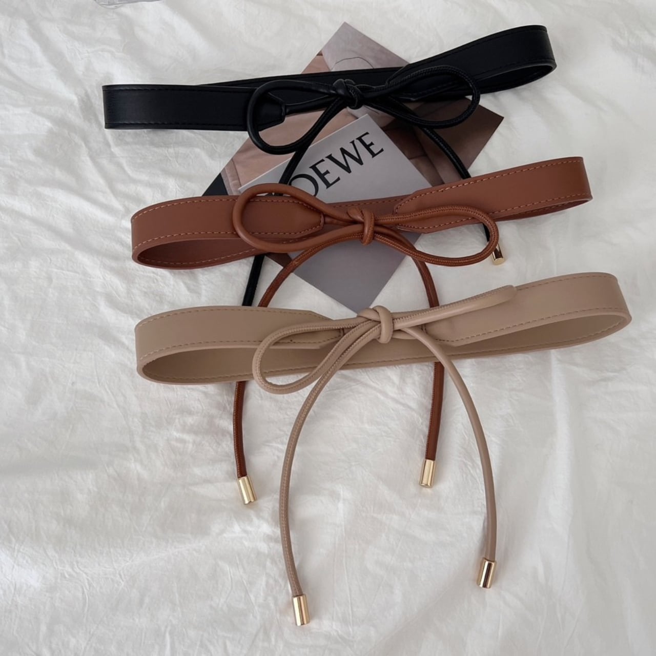 リボン結びフェイクレザーベルト(3色) a411