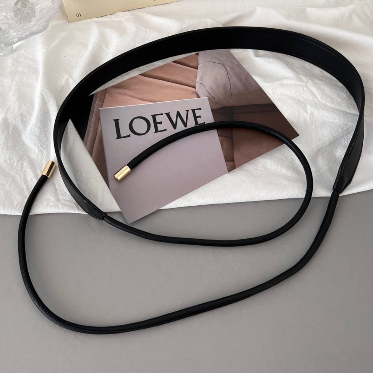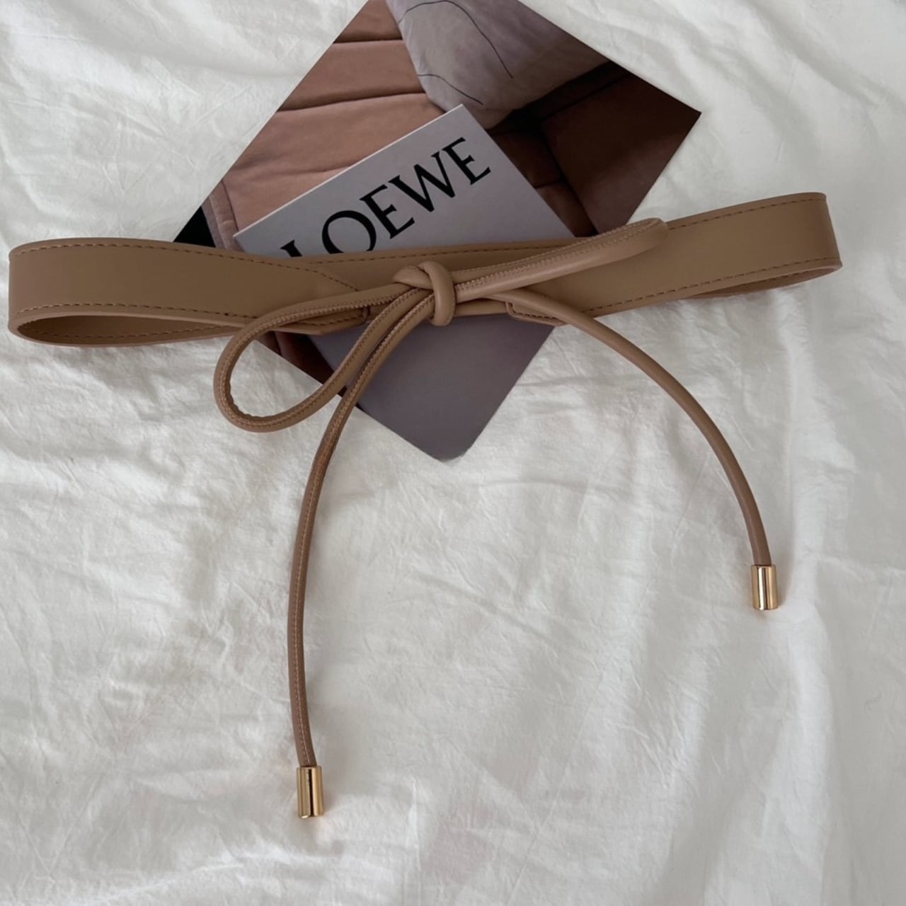 やわらかなフェイクレザー素材を使用した、上品なリボン結びデザインの細ベルト。