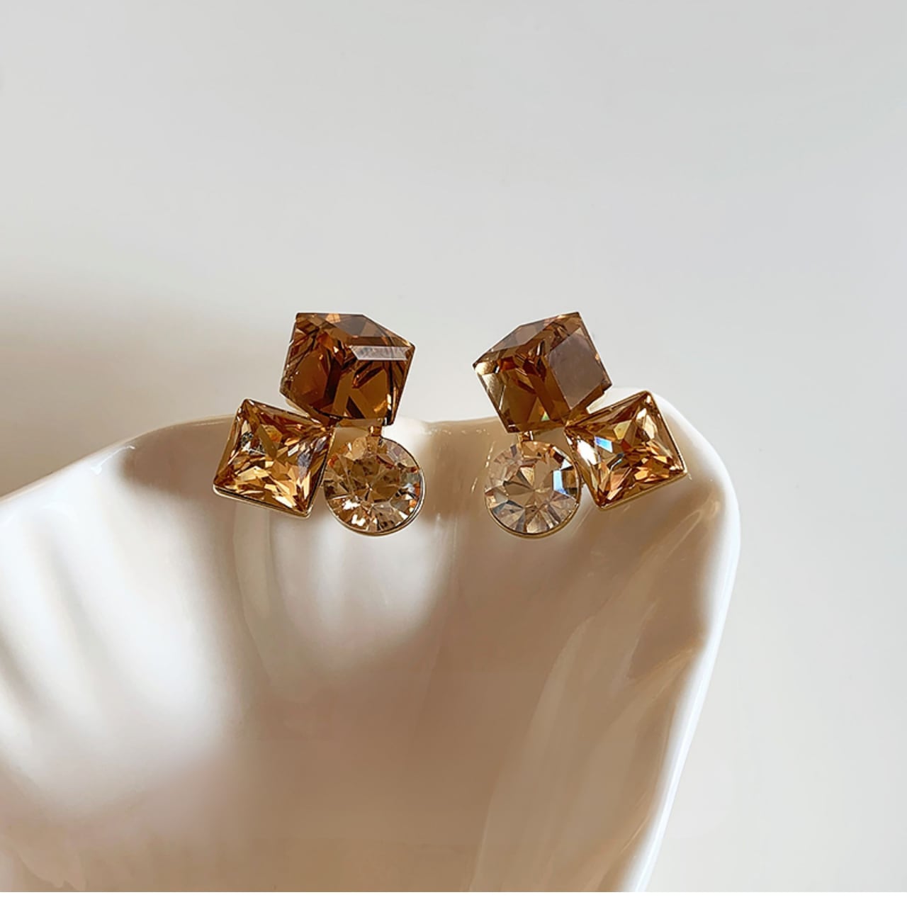 洗練された女性らしさを引き立てる、立体クリスタルデザインのピアス。