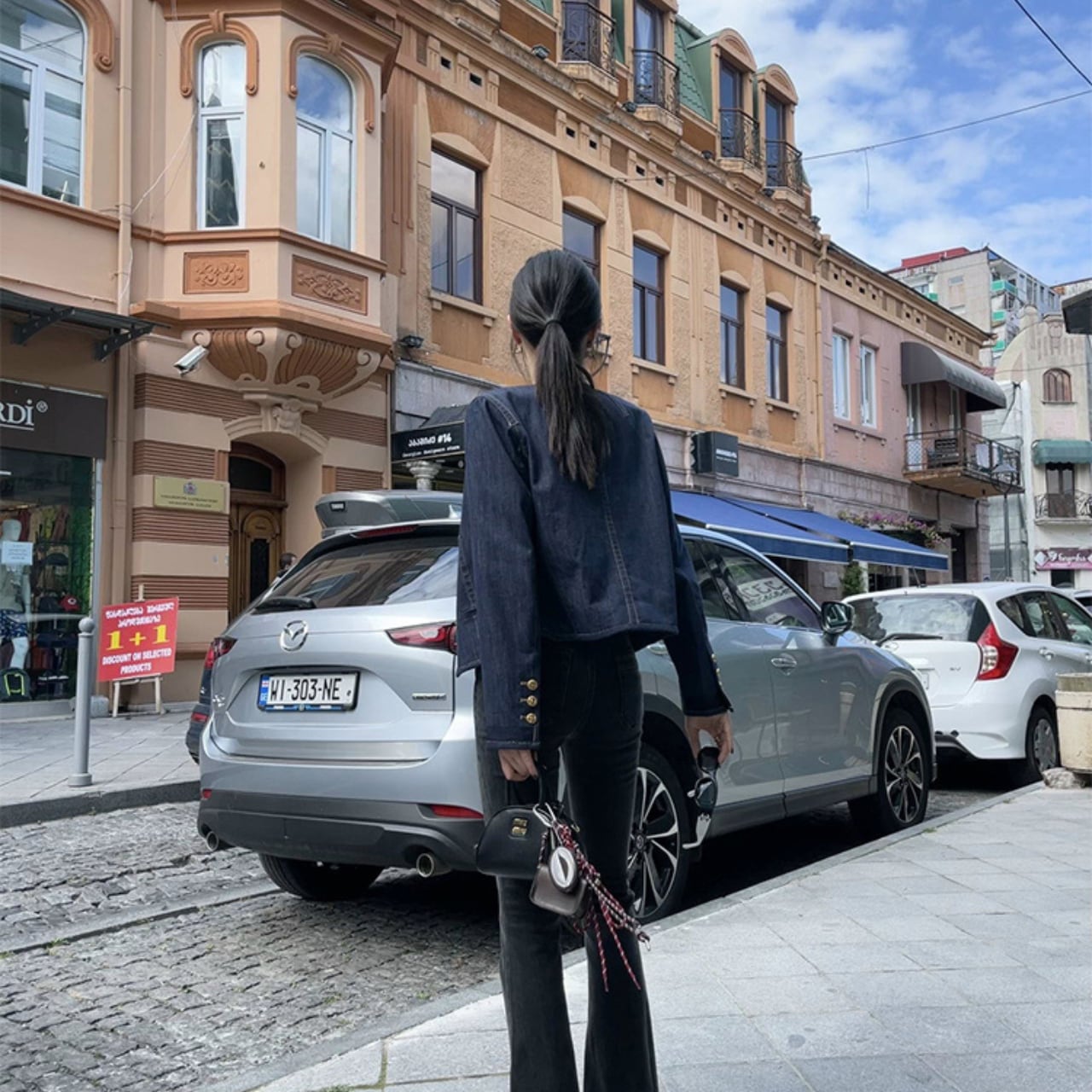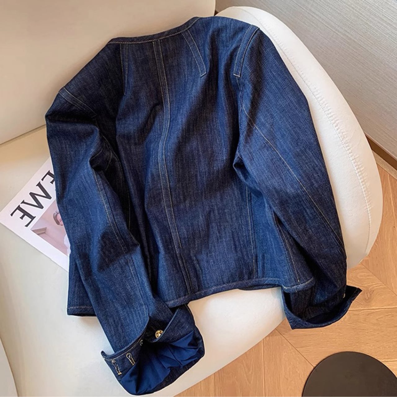「迷ったらこれ。」羽織るだけで“きちんと甘い”バランスが完成。デニムの気楽さなのに、首元とボタンの品でぐっと高見え。初見で褒められるアウターを一枚、ワードローブに。