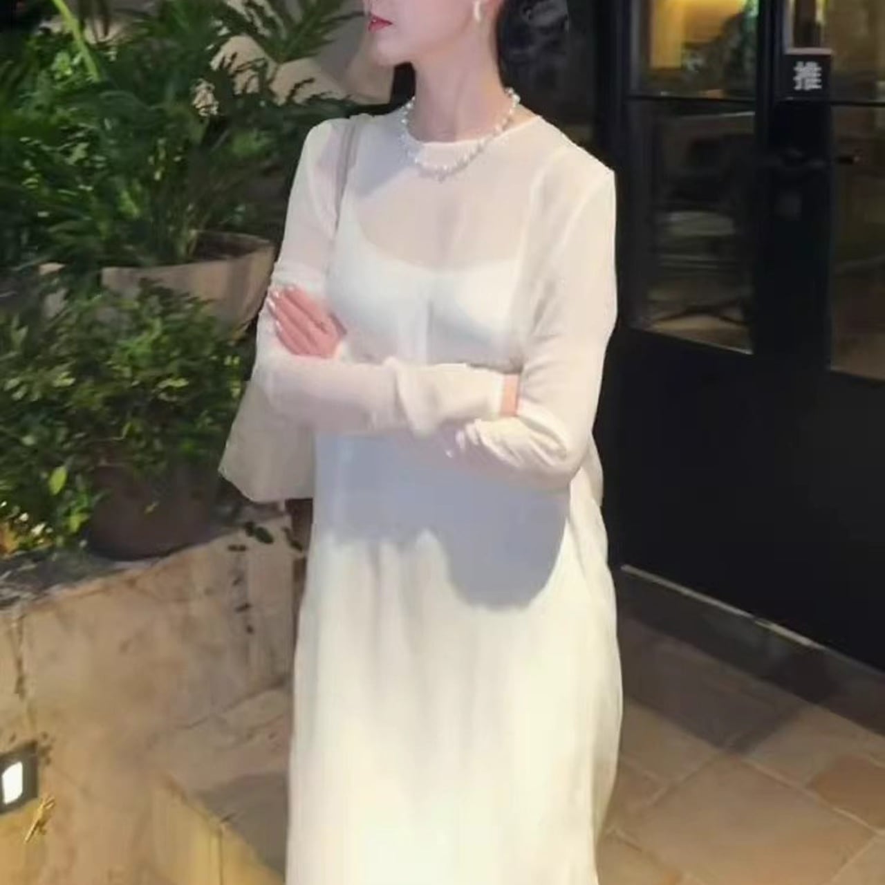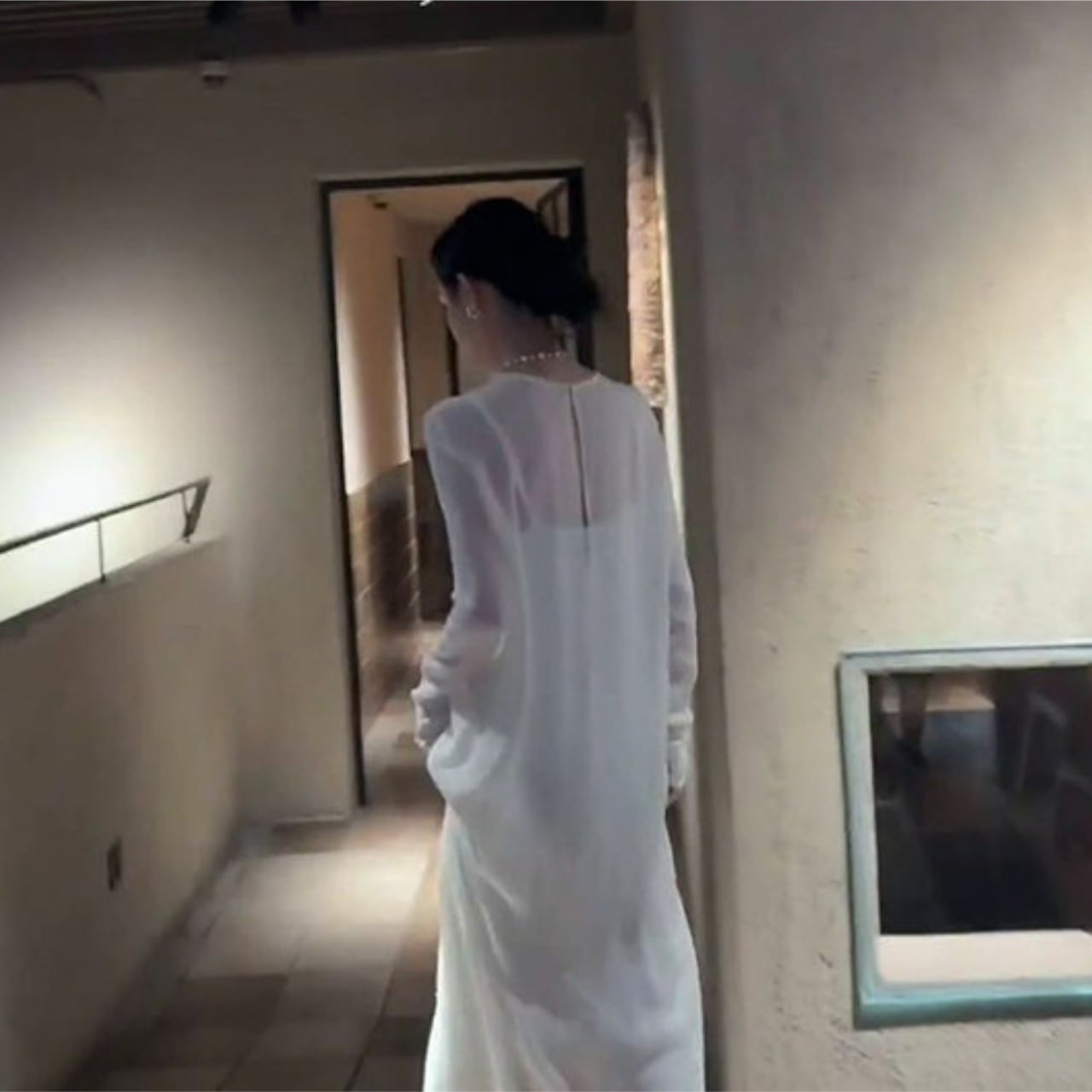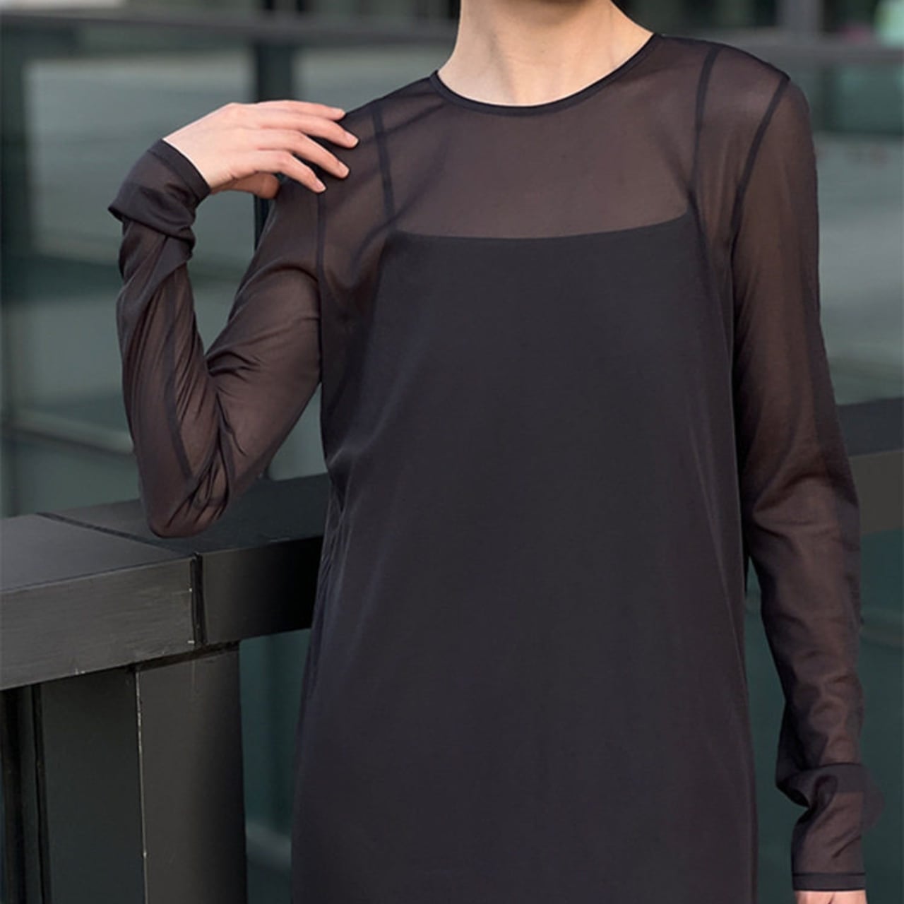 透け感を味方にした、大人のためのレイヤードワンピース。