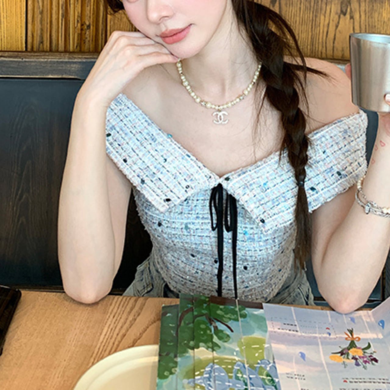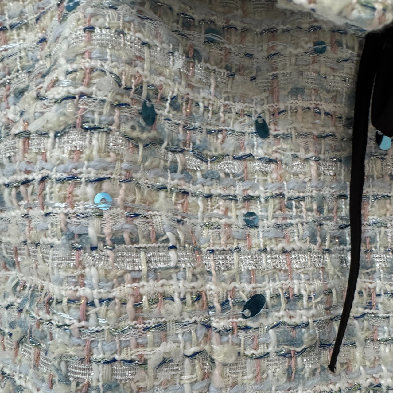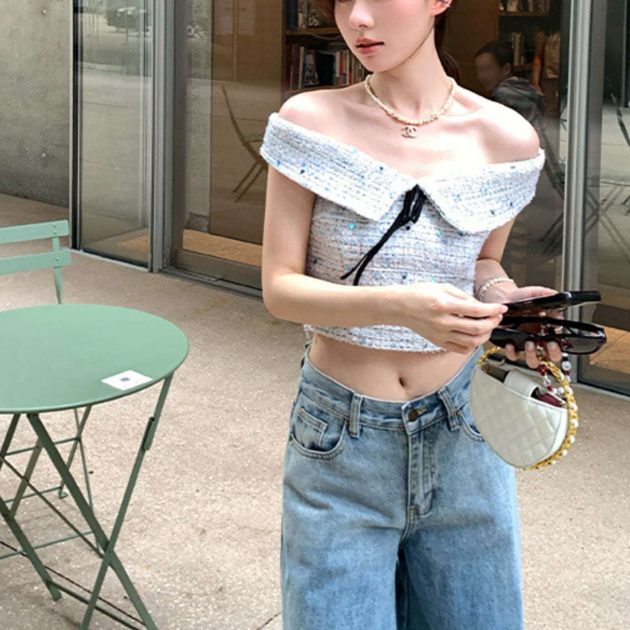 このオフショルツイードトップスは、上品なツイード素材で作られており、特別なシーンでも目を引くアイテムです。華やかなスパンコールとリボンが、シンプルなボトムスと合わせるだけでアクセントとなり、パーティーやデートなど、友人とのイベントにぴったりの一着です。シックなパンツやスカートと組み合わせることで、あなたのスタイルを引き立てます。