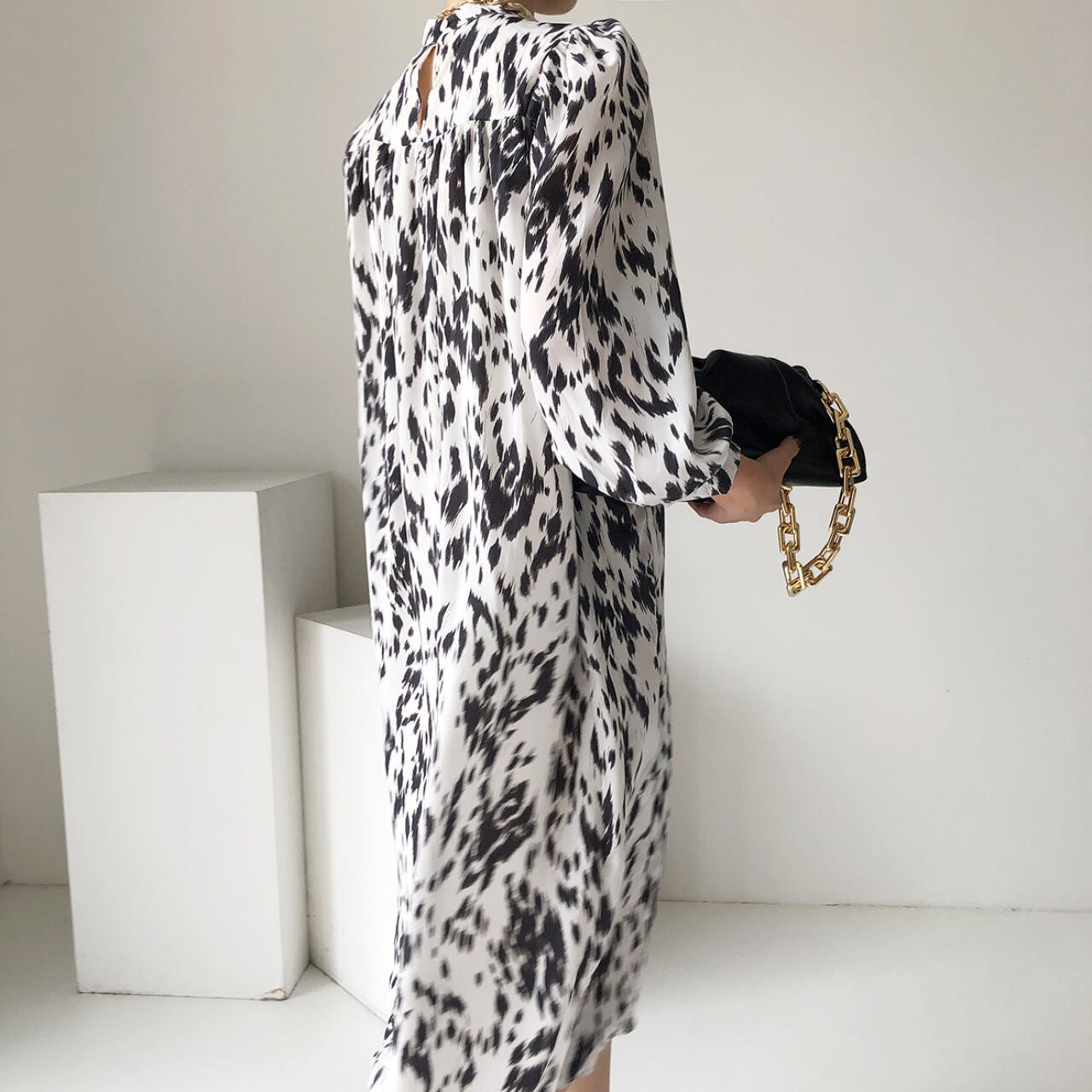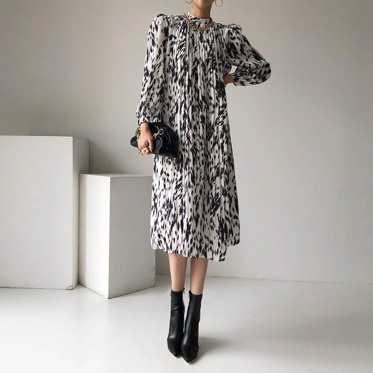 一枚でスタイルが完成する、存在感のあるアートプリントワンピース。