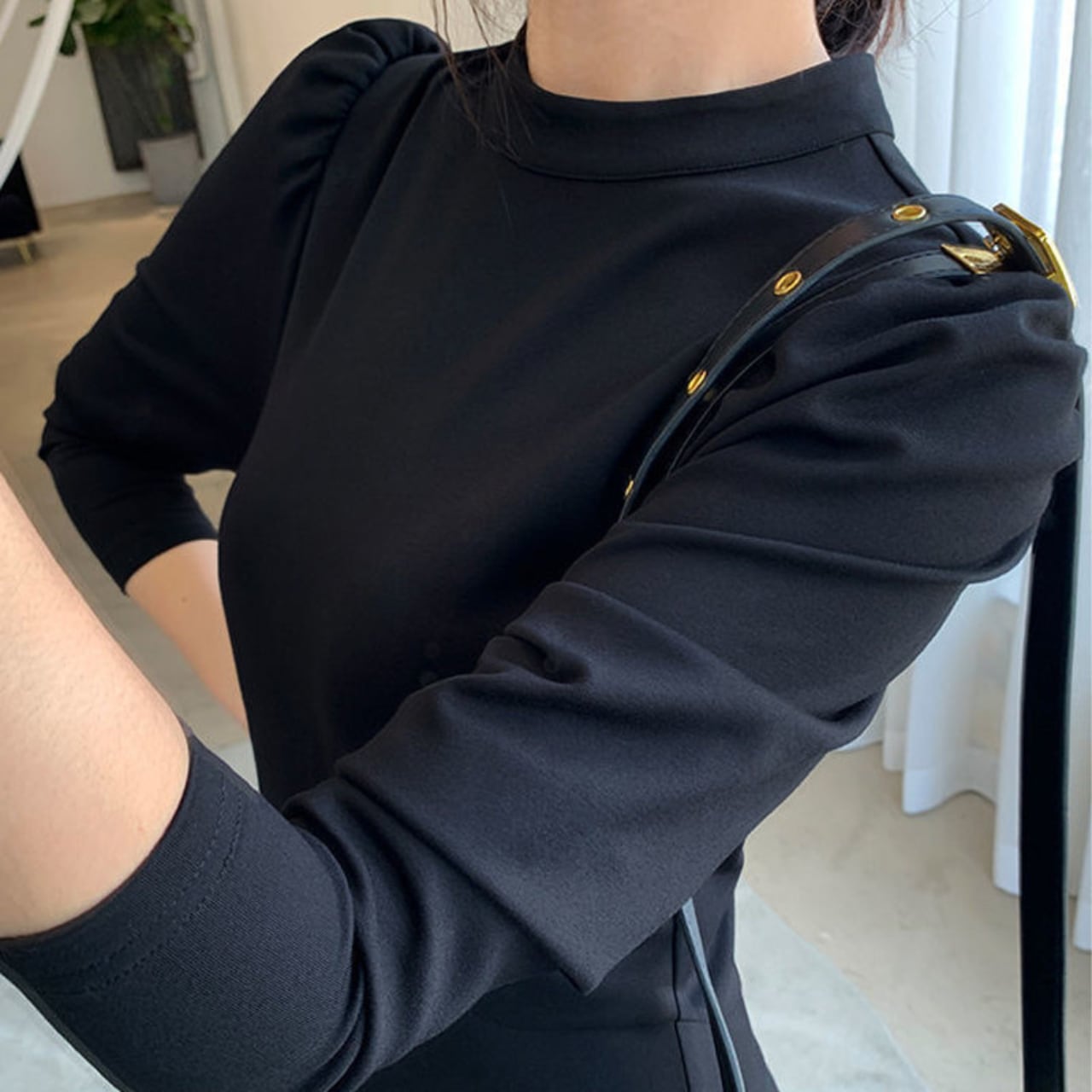 程よく詰まったハイネックと、