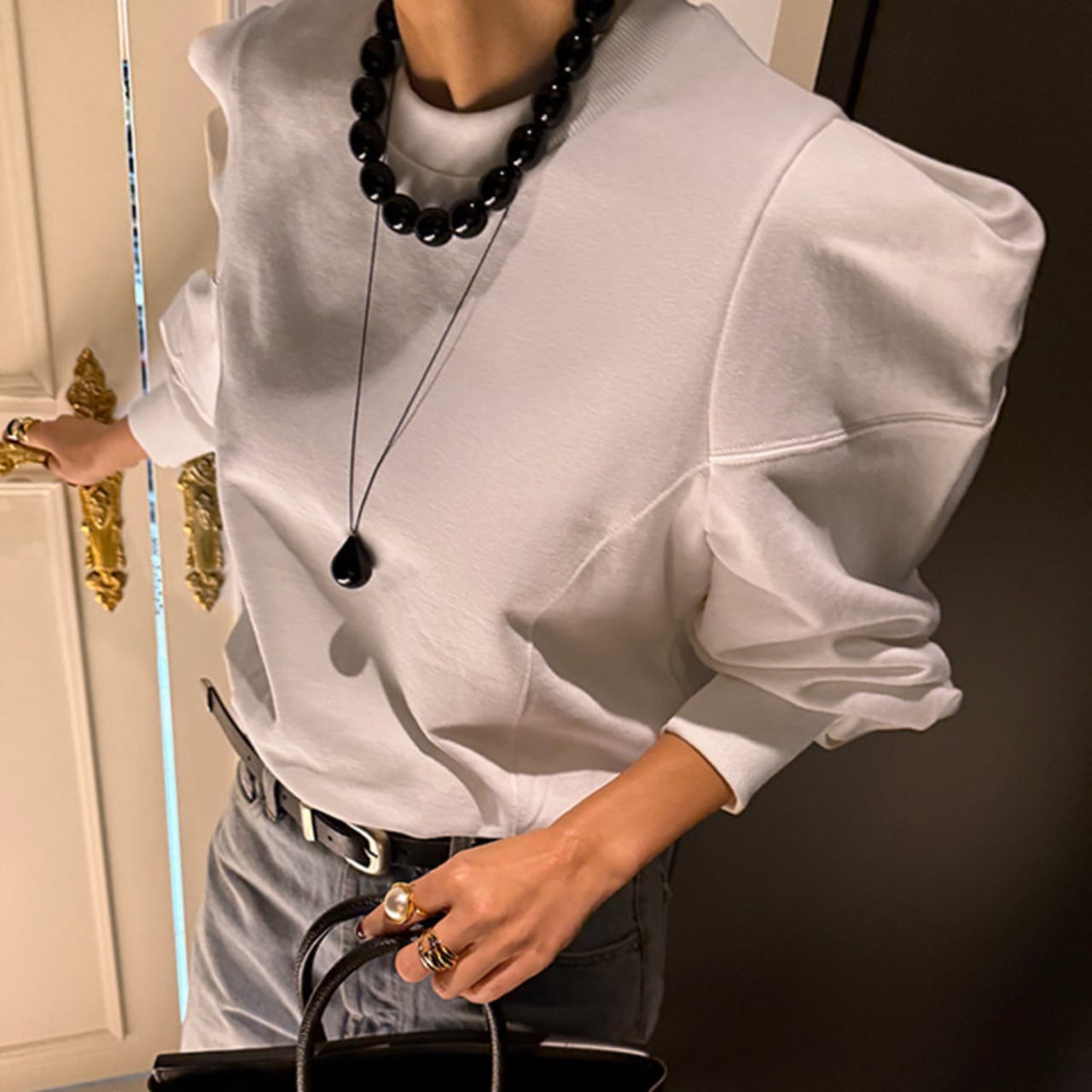 パワーショルダー ストラクチャートップス〈ブラック / ホワイト / グレー〉 a479