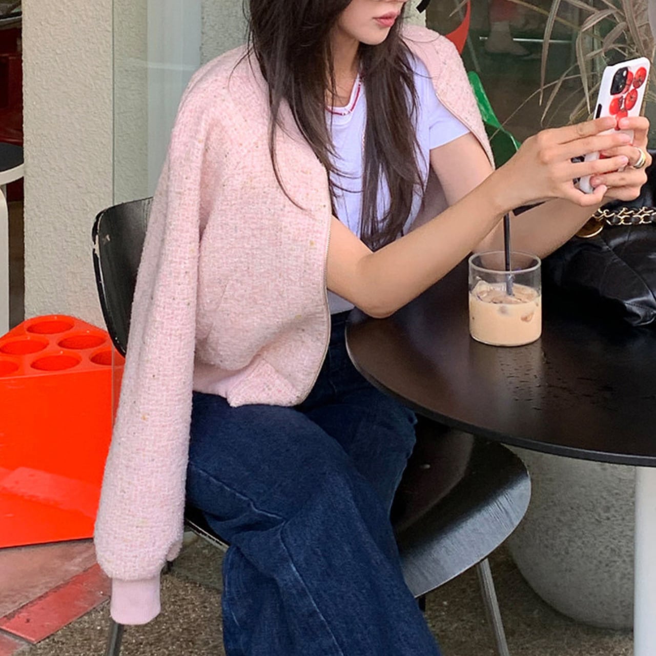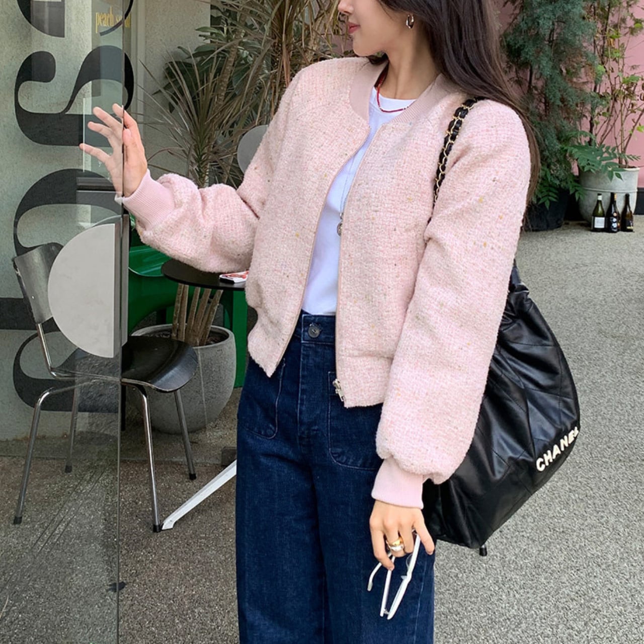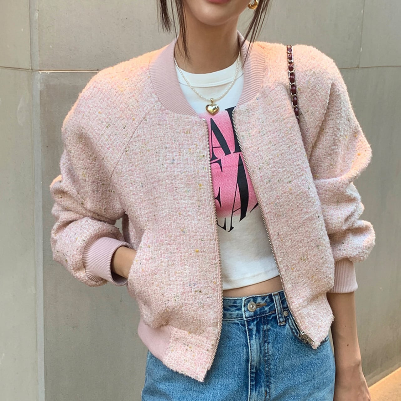 フレンチツイード ショートジャケット(ピンク / ネイビー)