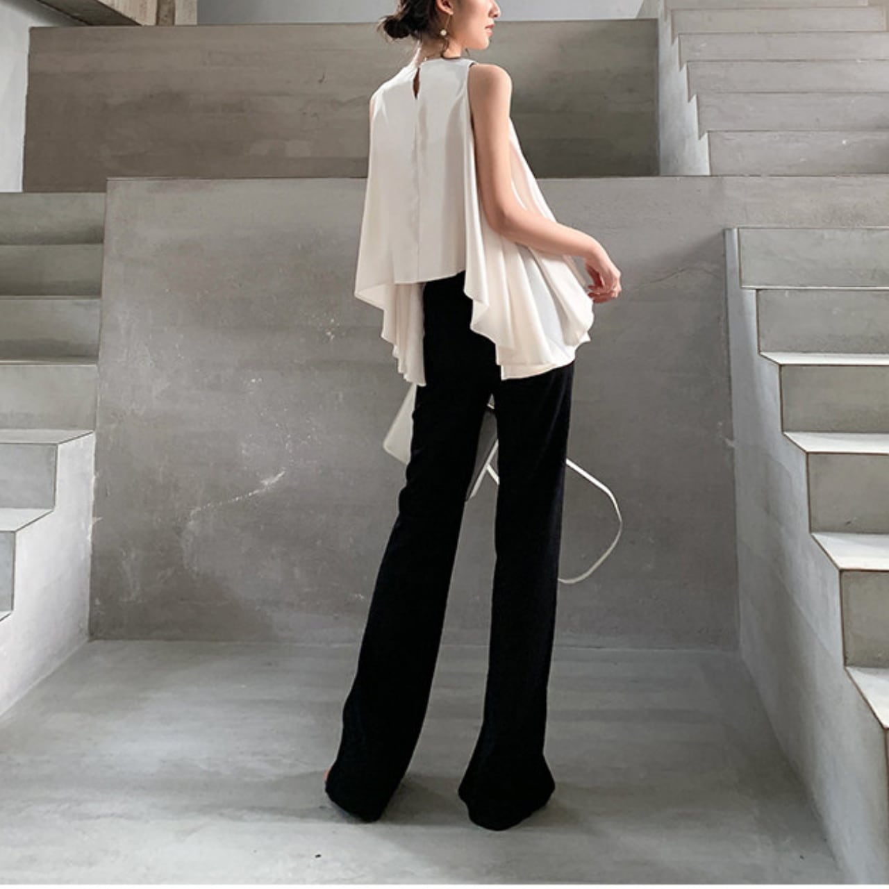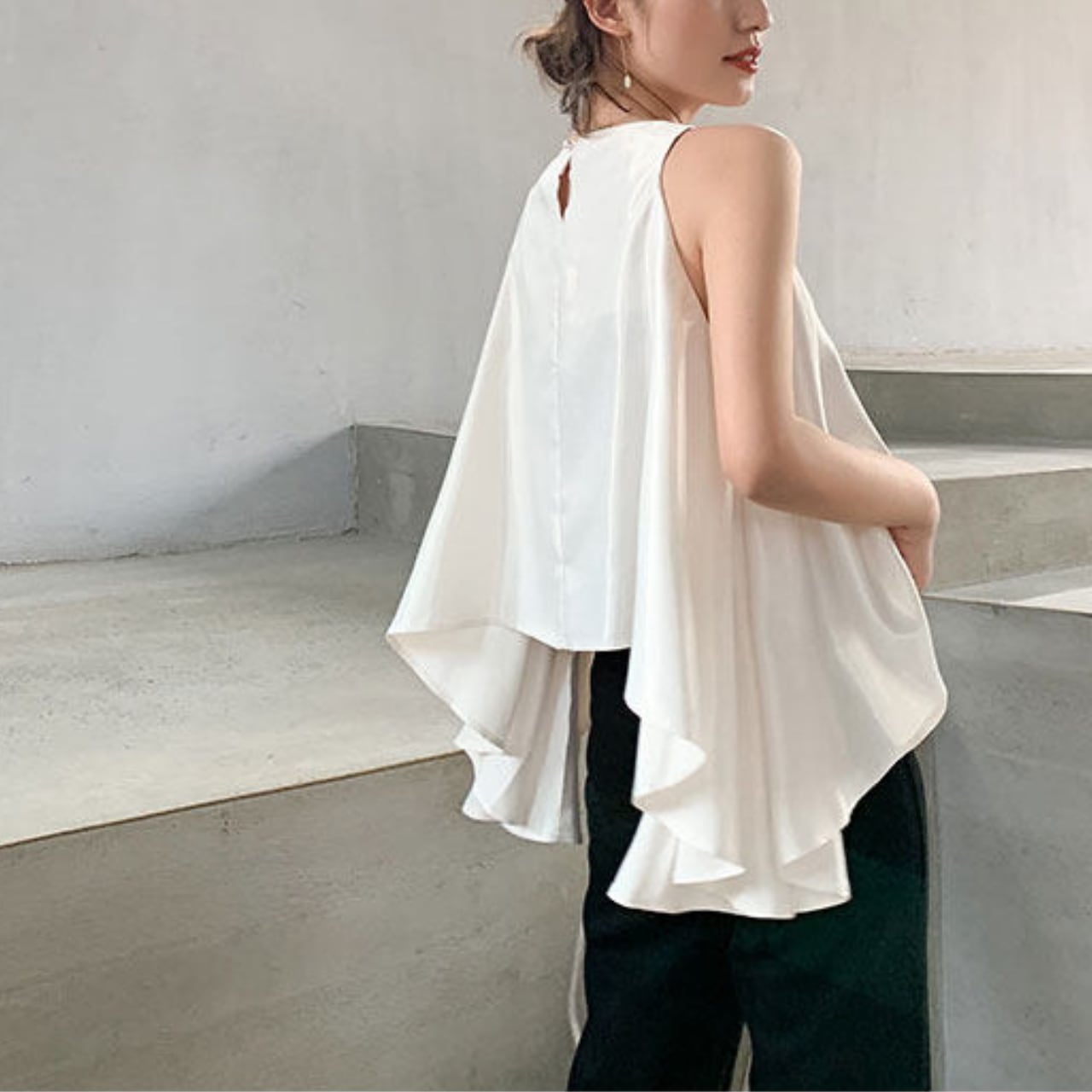 バックフレア×サイドドレープのシルエットが魅力の一枚。