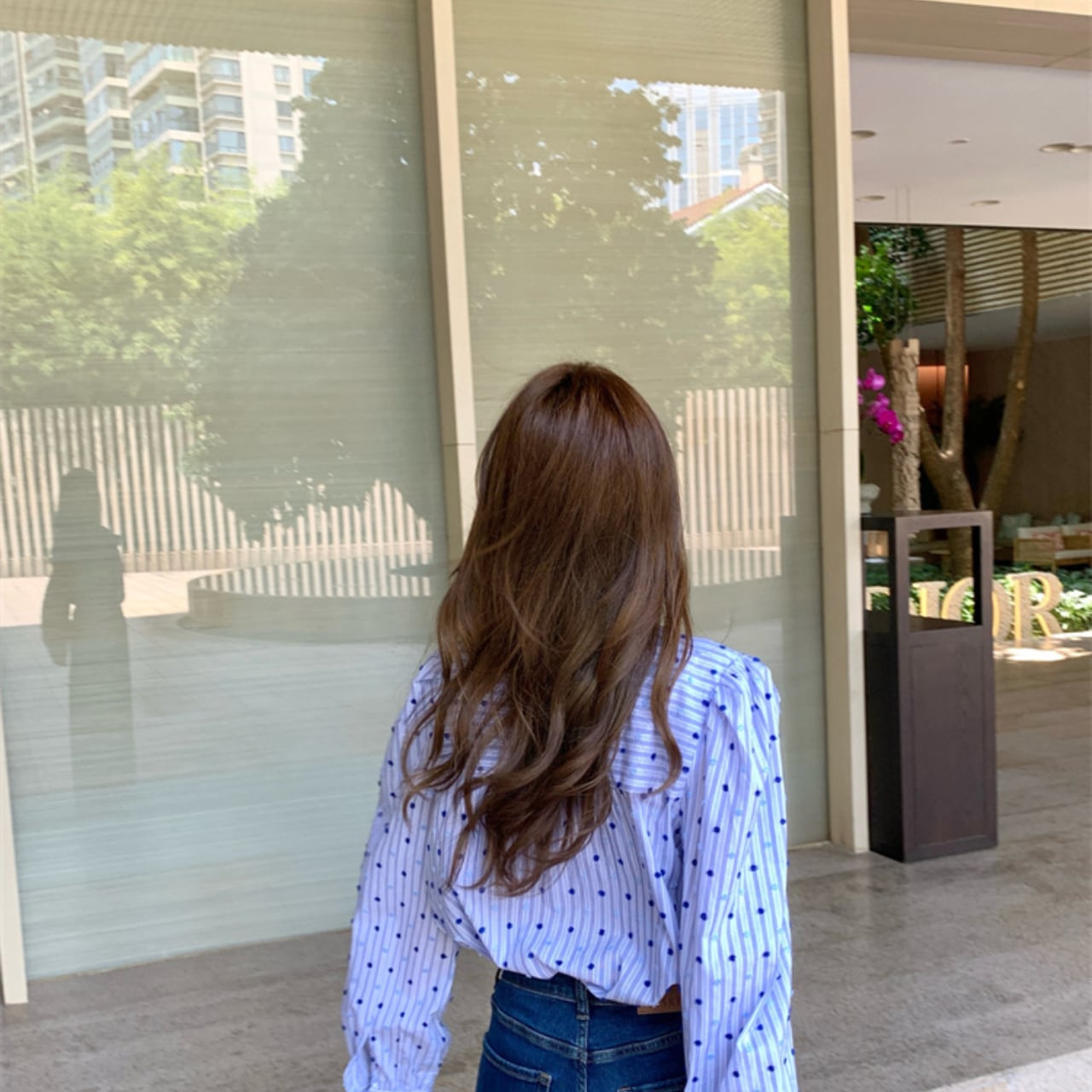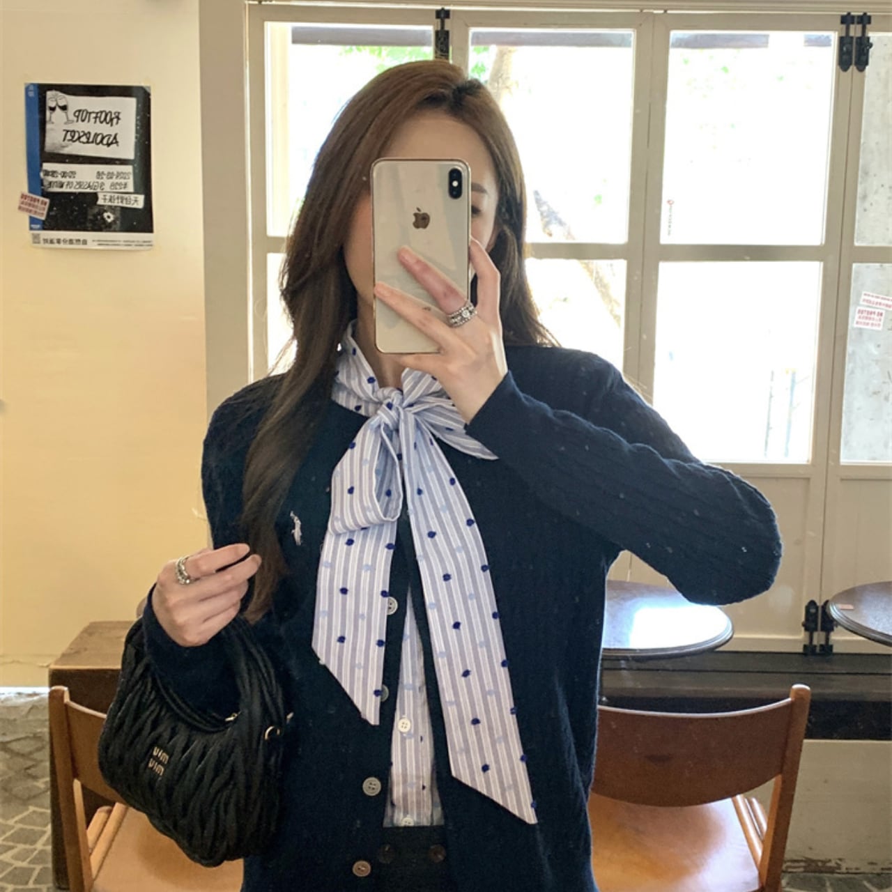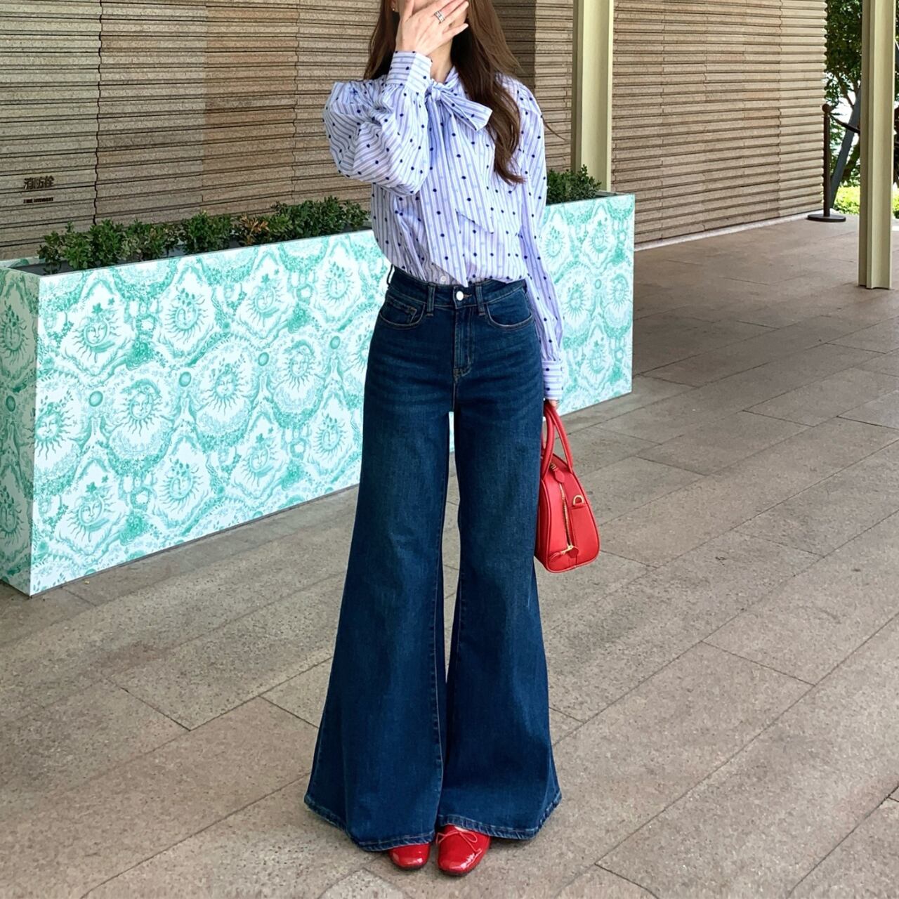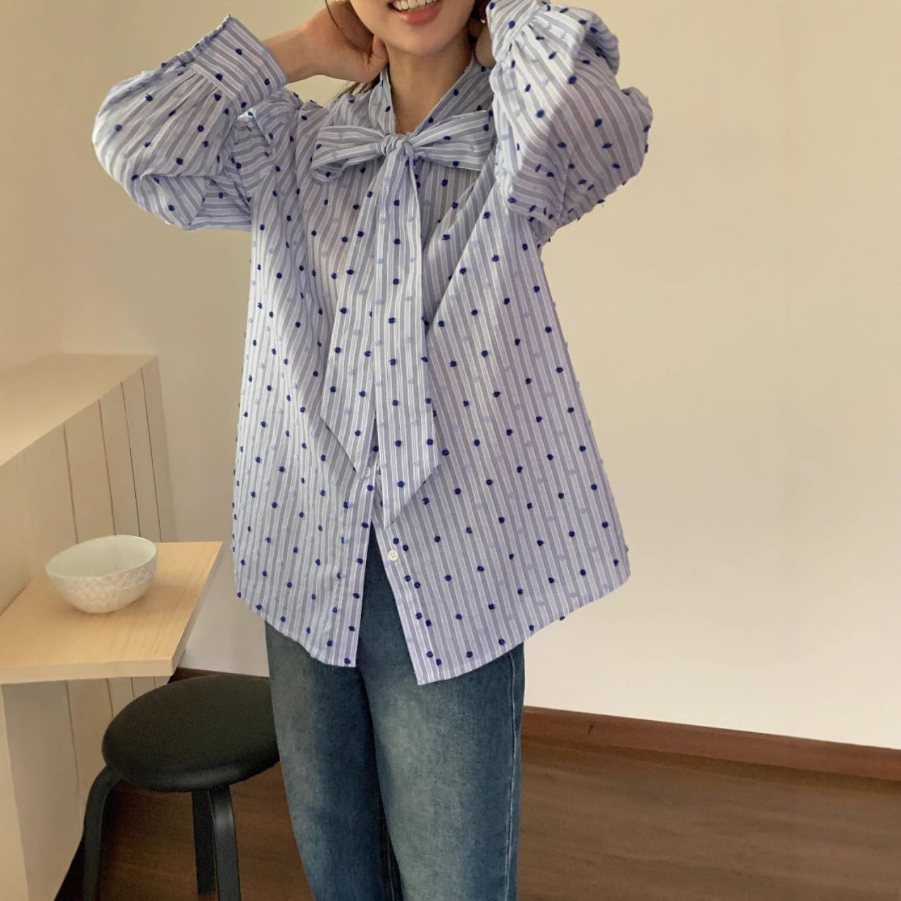 リボンボウブルーシャツ